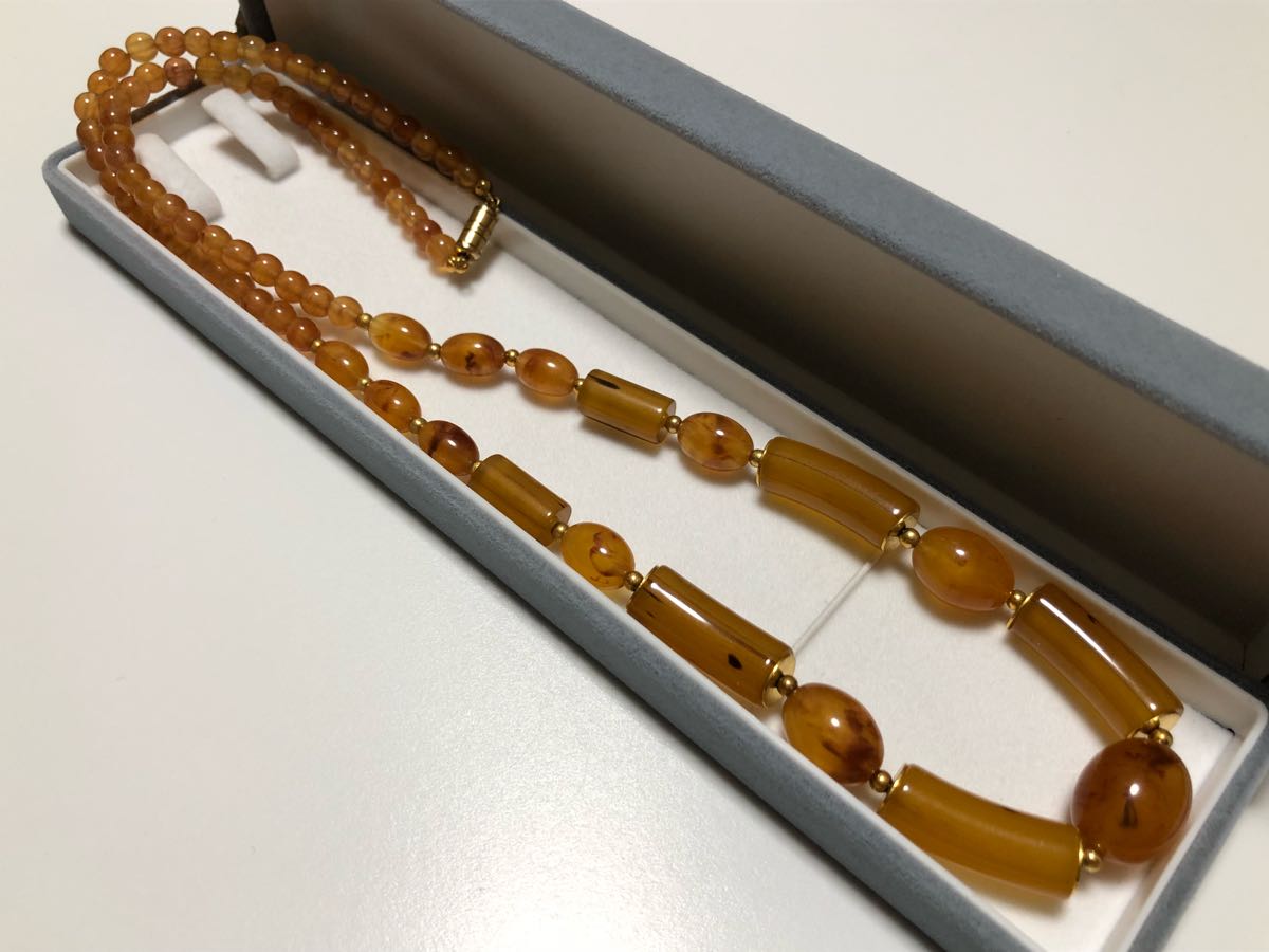 鼈甲風(樹脂)に仕上げた、ロングデザインネックレスです。