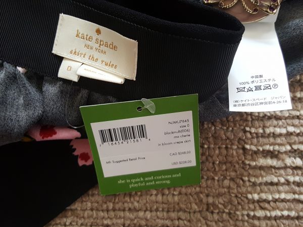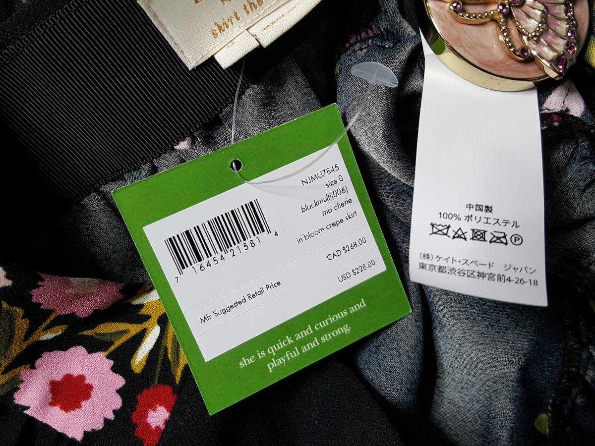 送料無料新品US0号/JP7号~9号 Kate Spade Newyork ケイトスペード ニューヨーク花柄スカート 黒地