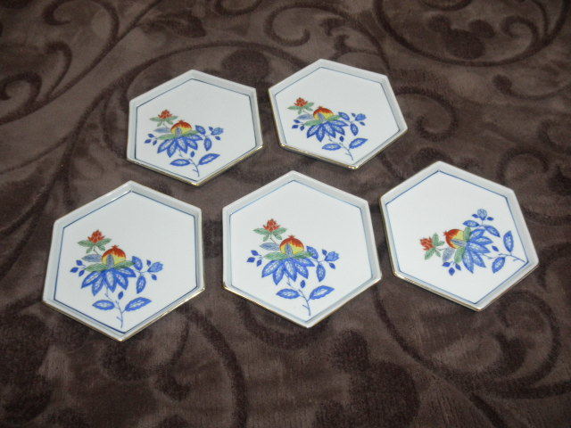 | 有田焼の六角皿5枚の出品です。 柿右衛門様式風のざくろのきれいな色絵皿です。 画像で表示のようにふちの金彩の薄くなっている部分が見られます。 またブツと経年の重ね傷がところどころ見られます。中古品をご理解ください。 西山のロゴ印がございます。 サイズ 上径13.2cm 高さ1.7cm ーーーーーーーーーーーーーーーーーーーーーーーーー 神経質なお方・些細な事が気になるお方、 または、新品をお求めのお方は、ご入札をお控えください。 ♪お客様のPC環境で、実物の商品の色と多少の誤差が生じる場合がございます。それらの点を十分ご理解いただいた上でご入札頂きますようお願い申し上げます。。 ♪発送は基本的に、ゆうパック60サイズ(持込割引120円引)での発送になります。 ♪お安い送料を、ご希望される場合、補償はございませんが定形外可です。 ♪定形外郵便1040円(破損、不着の補償無し、追跡無しです。) | |||