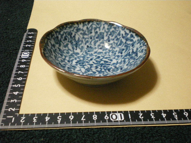 珍品フリマ] 陶器 古風な柄の小皿 1枚 直径10.8cm 全高 3.5cm ちょっと深め[送料無料]