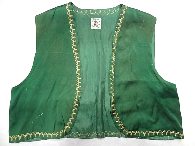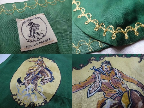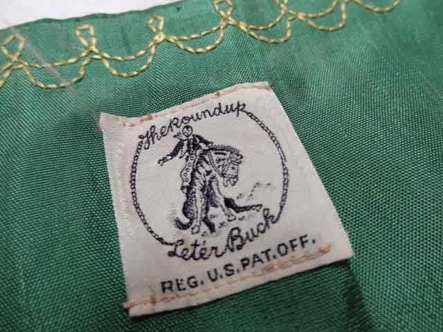ビンテージ 40S~50S 希少 ロデオ カウボーイ ウエスタン サテン 素材 ベスト プリント ハンドステッチ 刺繍 トリム レア 光沢 緑 グリーン