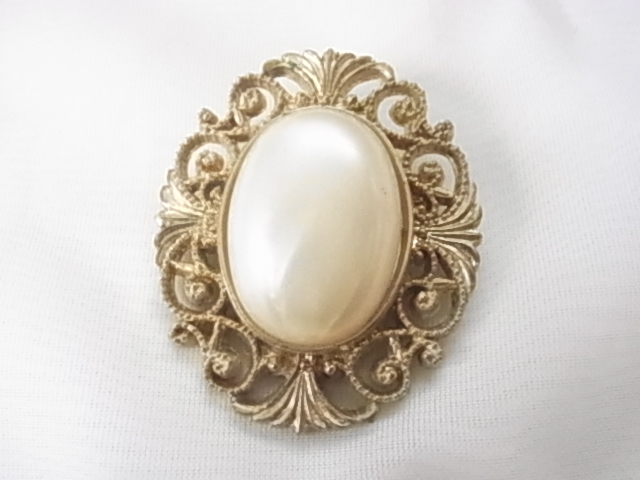 シェル調 パールのようなカラー クラシカルなデザイン ブローチ◇