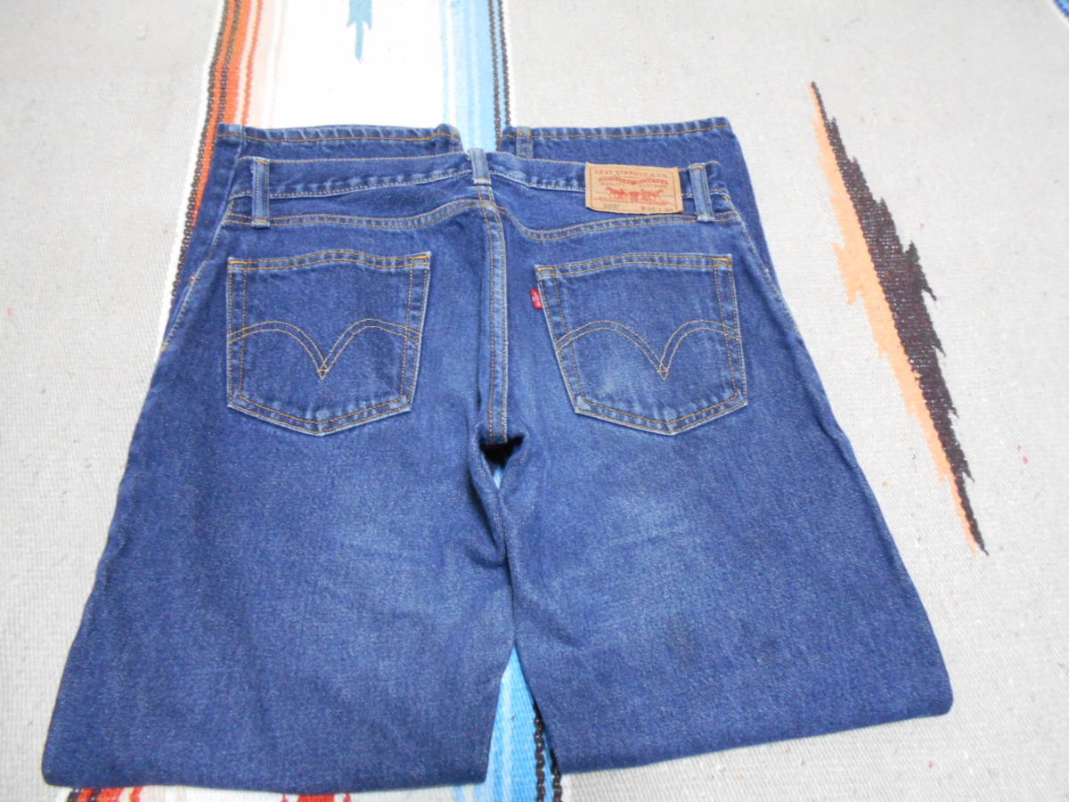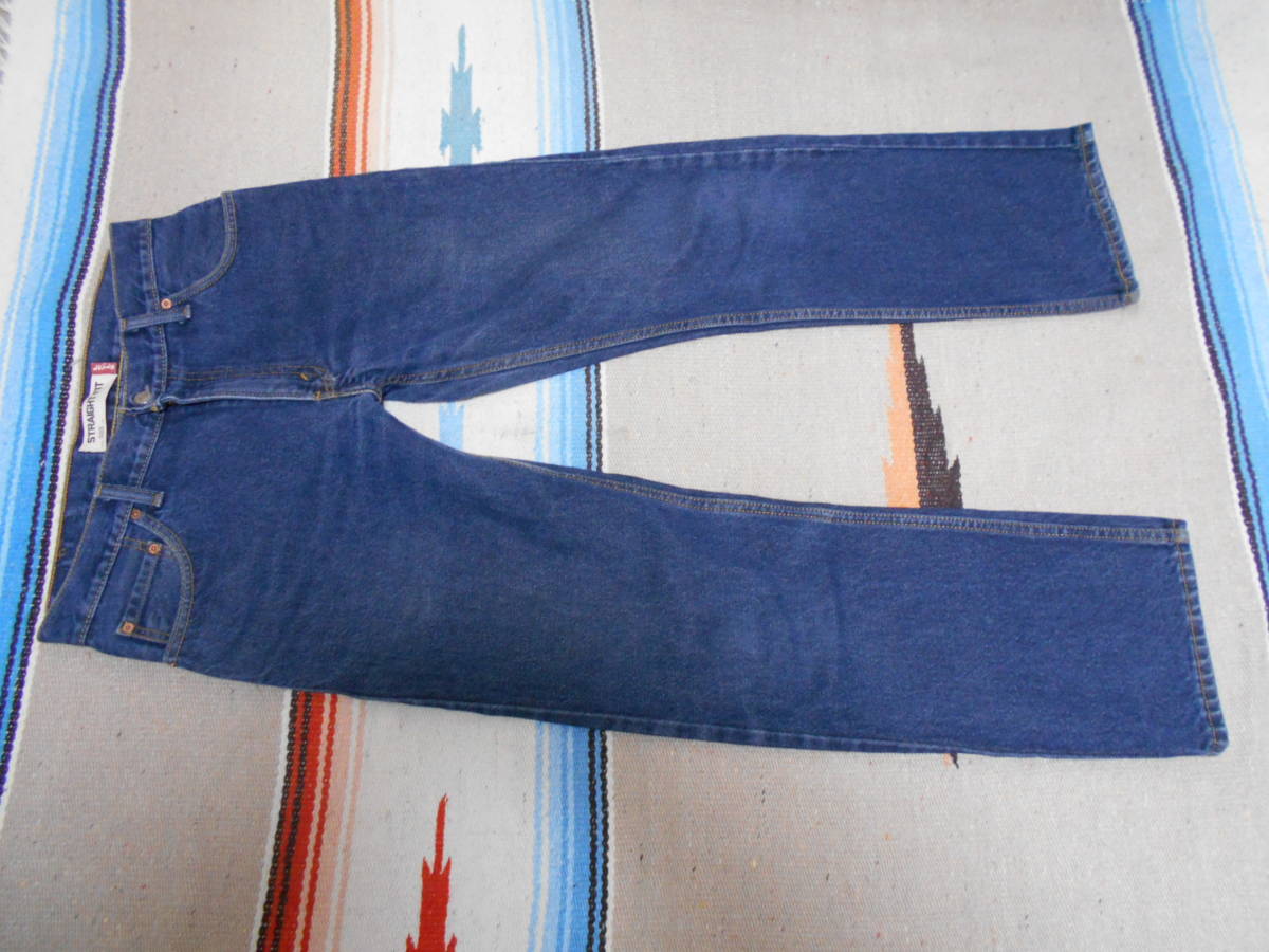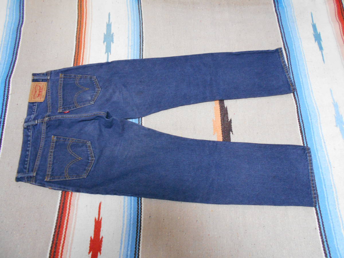 Levi's USA 505 REGULAR FIT 特有、タイト過ぎないストレートレッグスのシルエットライン、バックポケット形状、インディゴ ハイオンスデニム素材感、伝統的なディテール