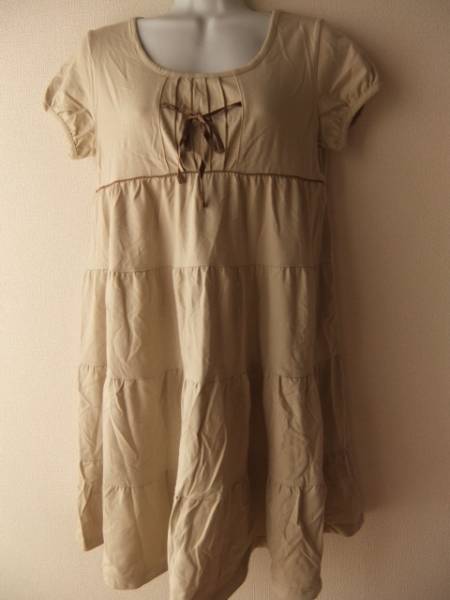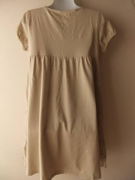 新品の、とてもストレッチがきいたカットソー生地のベージュティアードワンピースです。