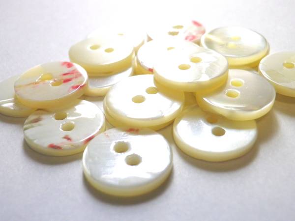 | ★商品説明★ | 非常に使いやすい まっ平らな型のボタンです。 洋服のボタン変え、趣味の手芸にと、大活躍な形です。 9mm. 10mm. 11.5mm. 13mm. 15mm. 18mm のサイズがあります。 「貝 ボタン まっ平ら」 で検索してください。 「貝ボタン」の原材料(原貝)のなかで最もポピュラーなのが「高瀬貝」です。主にワイシャツやブラウスのボタンに使われている巻貝で、ボタン裏側にピンクやブルーの模様があるのが特徴です。 | ||