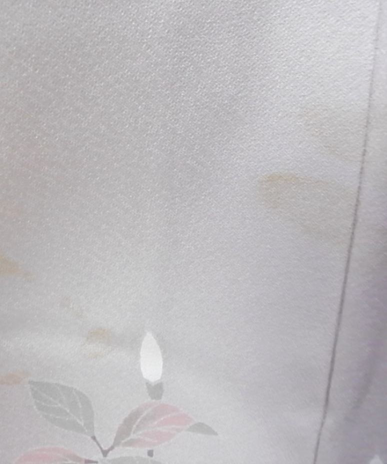 袖、袂、上前、後身ごろ等に極薄いシミ汚れが見られます