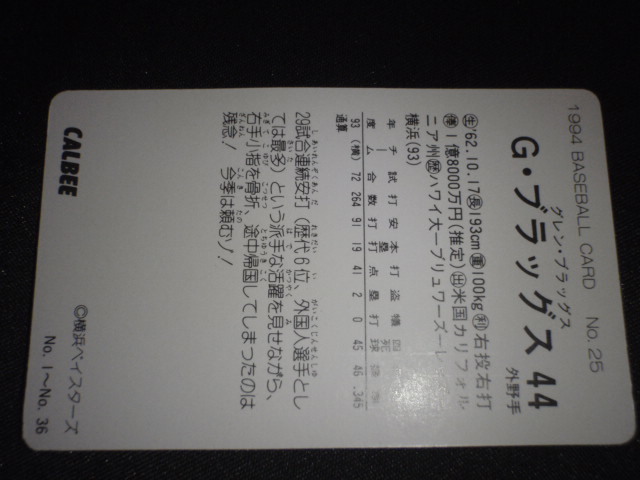 1994 カルビーベースボールカード No25 G ブラッグス 横浜ベイスターズ