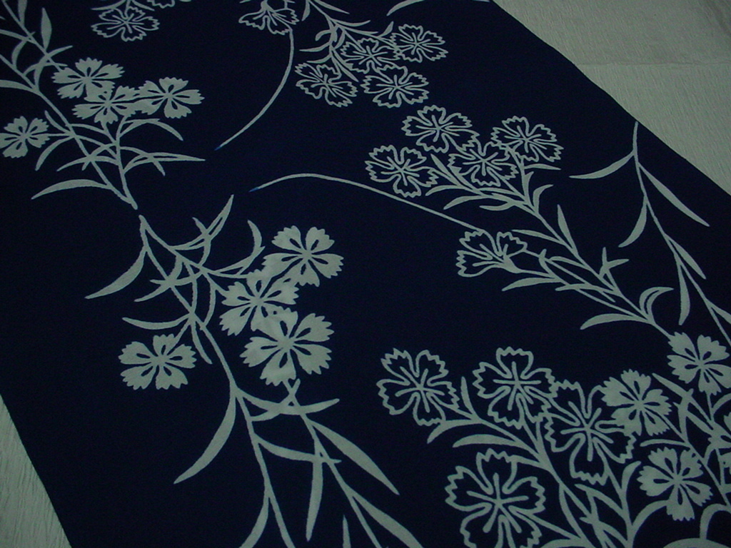 地色・柄    鉄納戸(明るい紺) ・ 撫子
