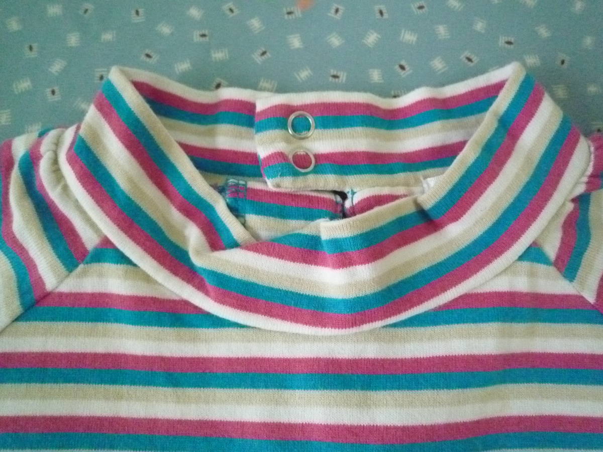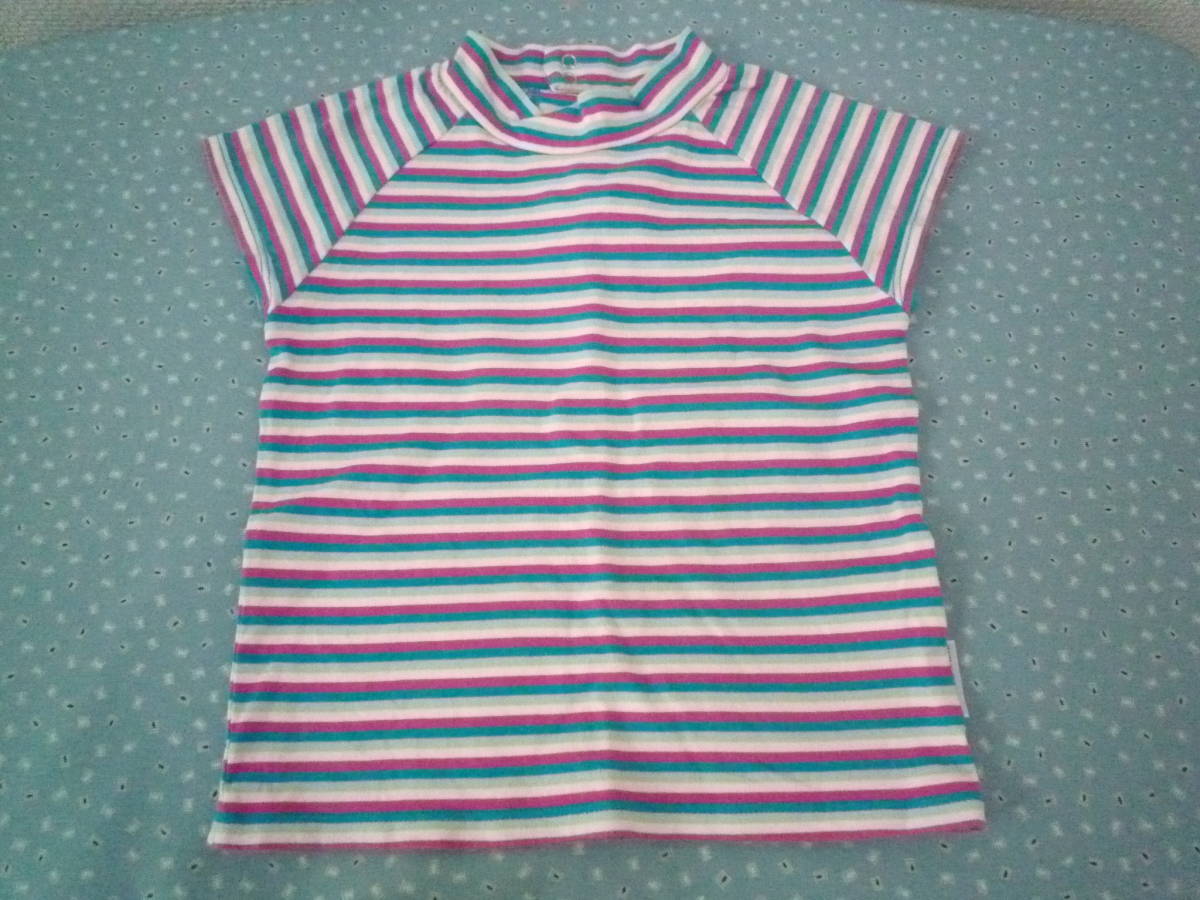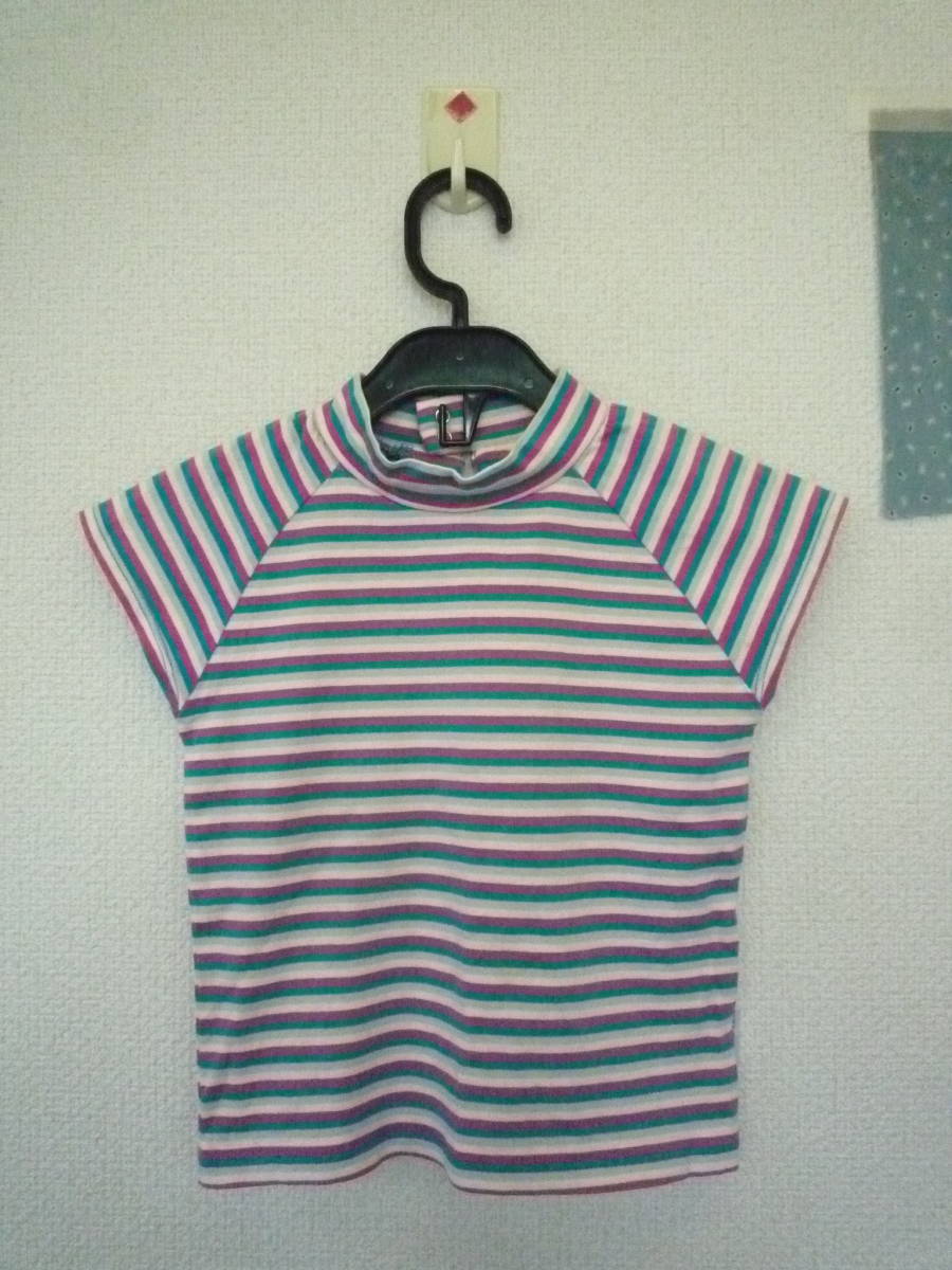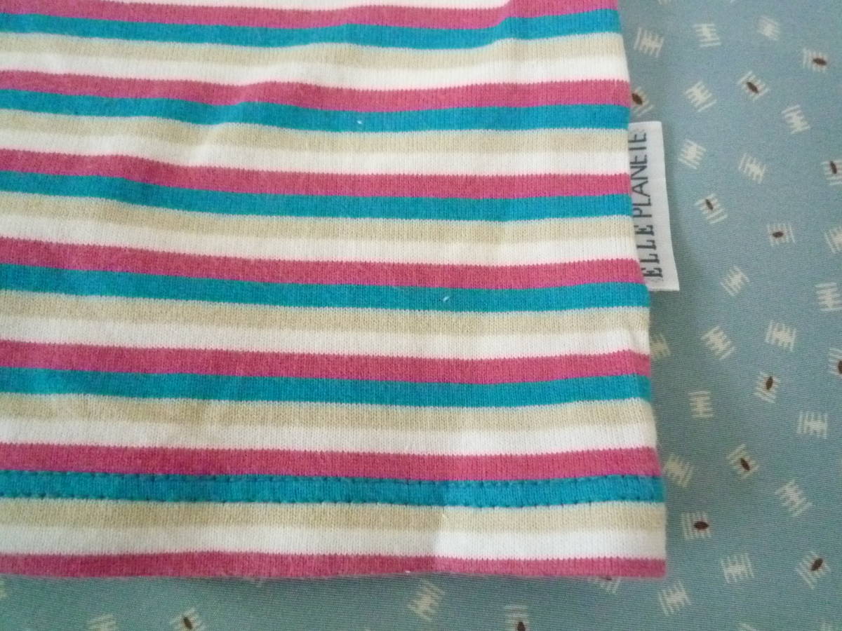 ★ELLE PLANETE ハイネック ラグラン フレンチ袖 カラフルボーダー トップス 100