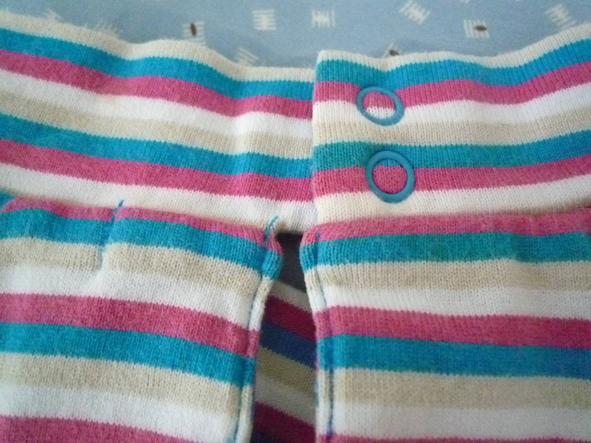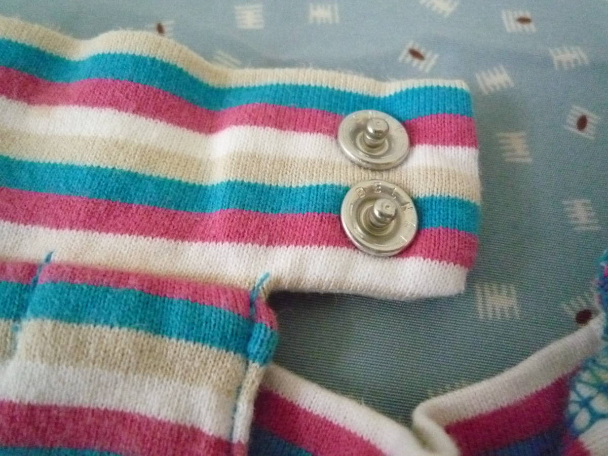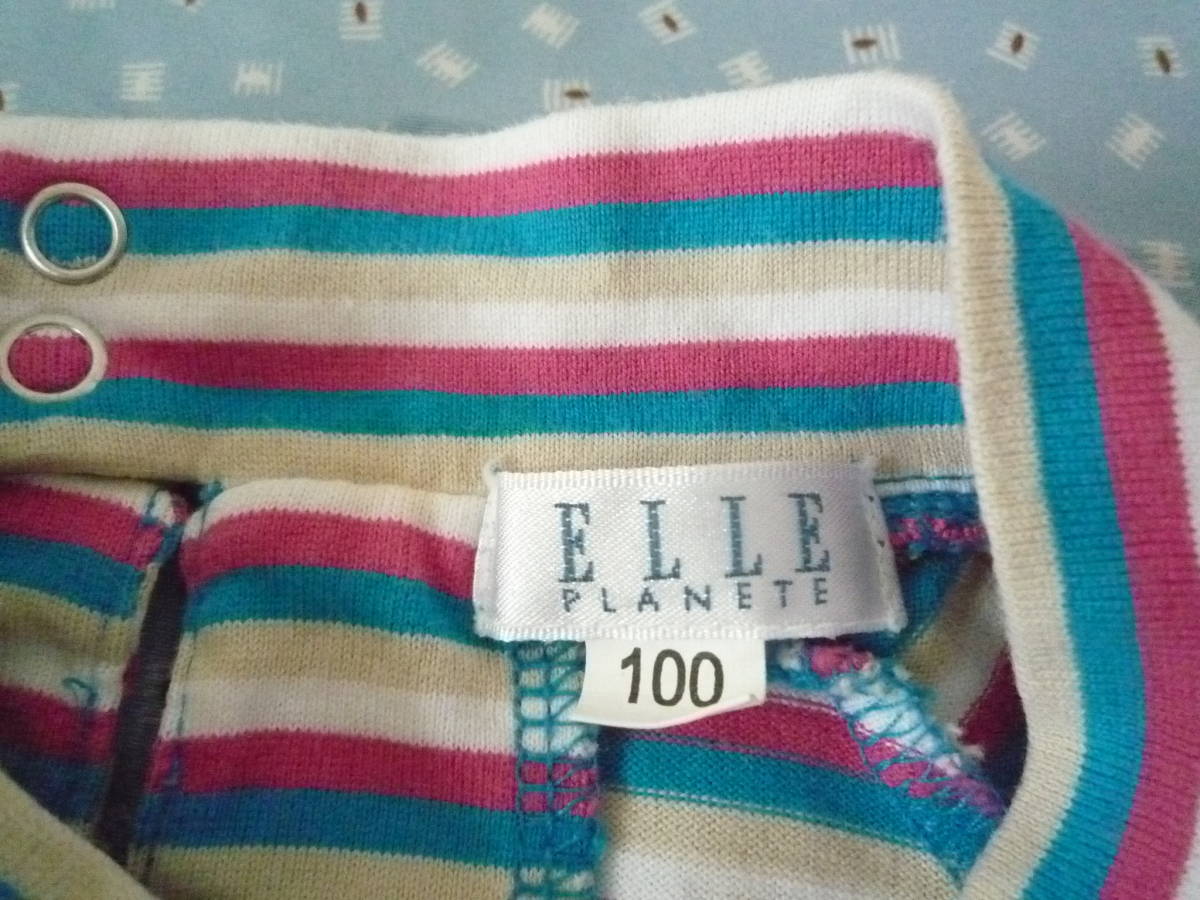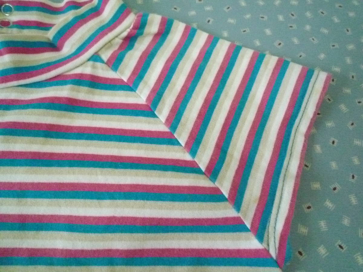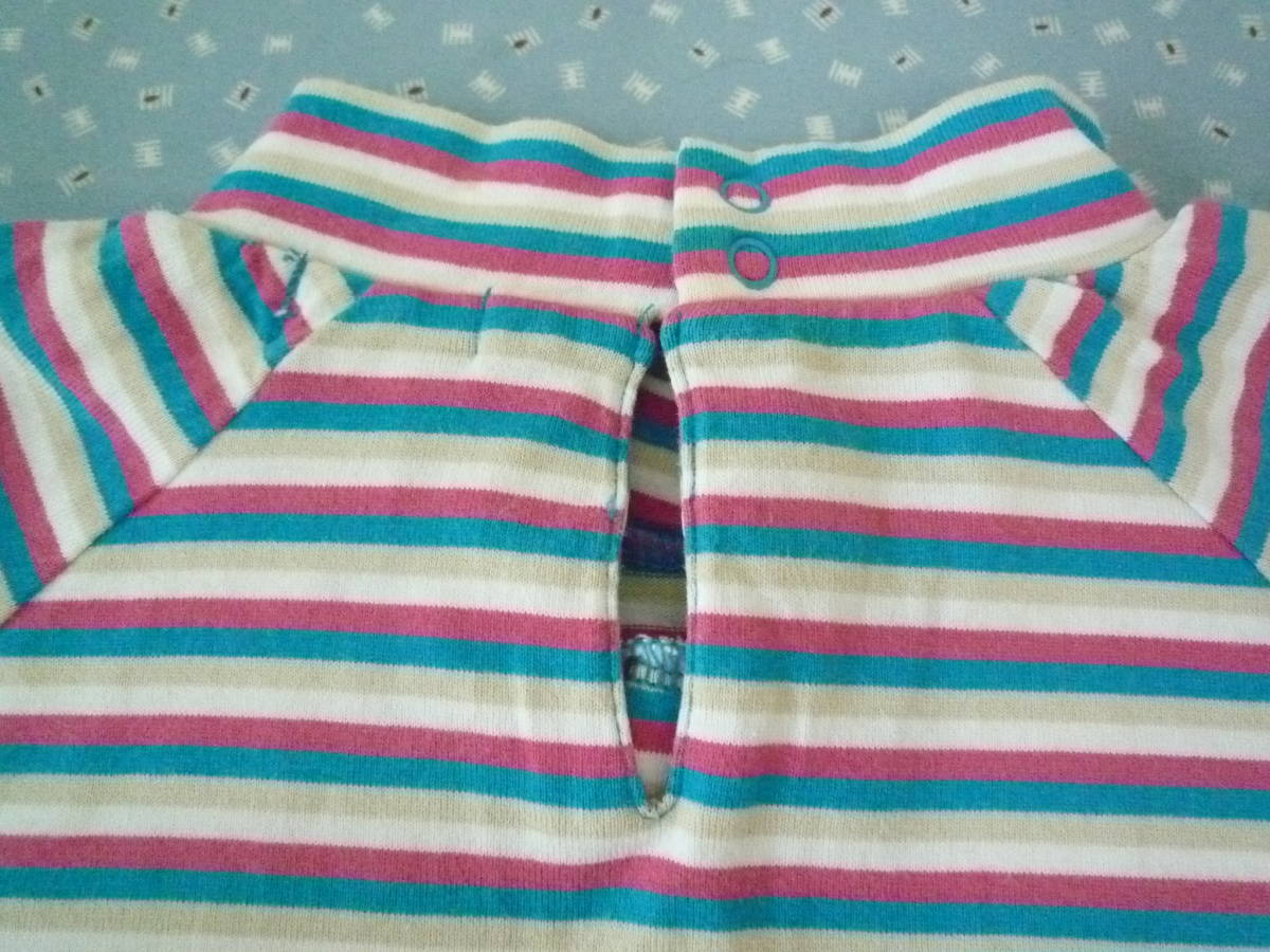 ★ELLE PLANETE ハイネック ラグラン フレンチ袖 カラフルボーダー トップス 100