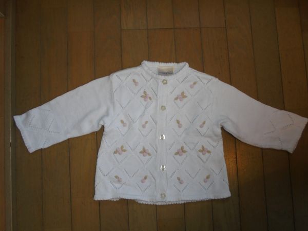 ローラアシュレイ★花刺繍白の綿ニットカーディガン★100