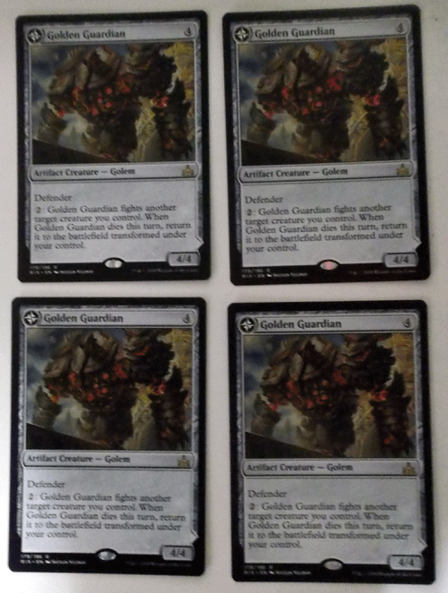 MTG英語/4枚セット/Golden Guardian(黄金の守護者)/イクサランの相克/レアです。中古品扱いですので、神経質な方、美品をお求めの方は入札をご遠慮ください。