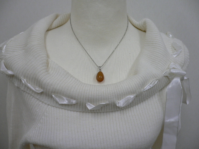◆天然石ネックレス在庫処分◆カーネリアン 卵型たまご形ネックレス/チェーンは40cm