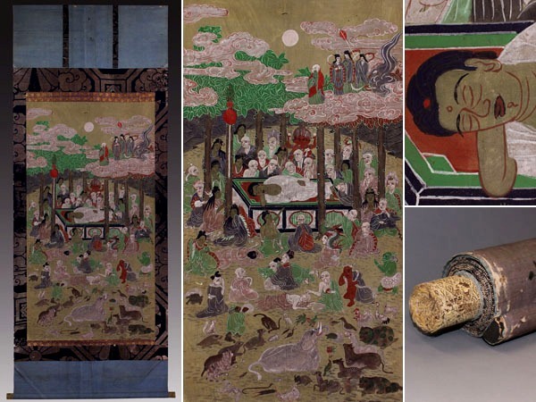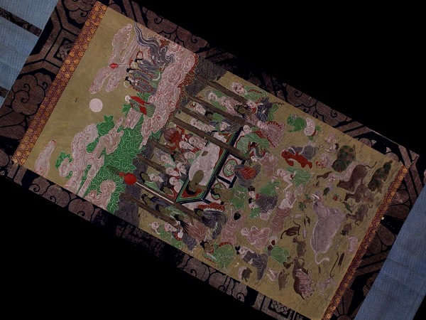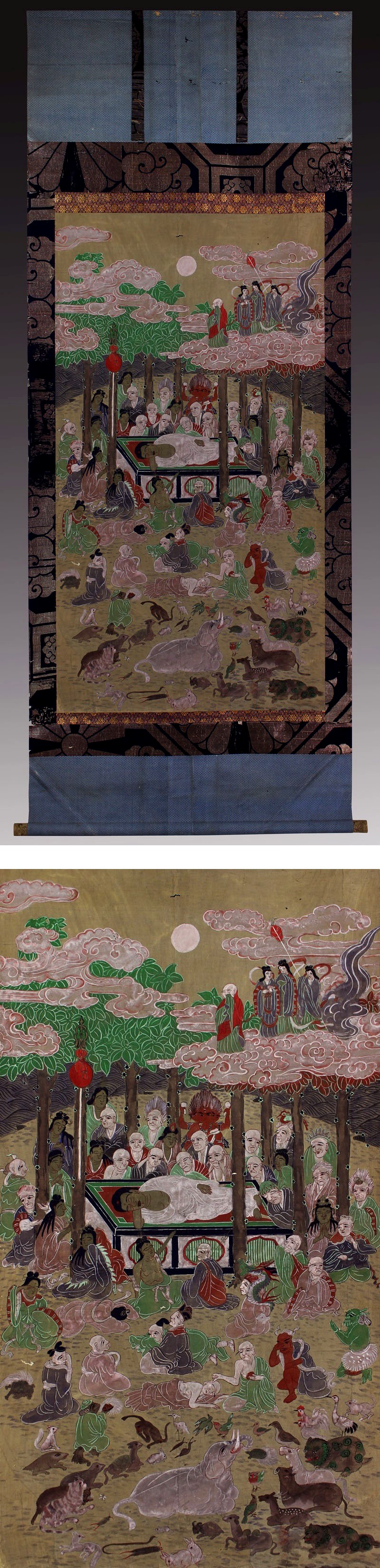 | №1810027【肉筆】古画・仏画【涅槃図】◆絹本◆合箱◆掛軸 | |