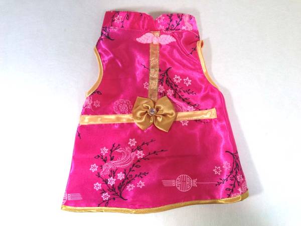 | 3号★送料無料・ネコポス便★小型犬・チャイナ服(ピンク)★ピンク飾り | |||||||||||
