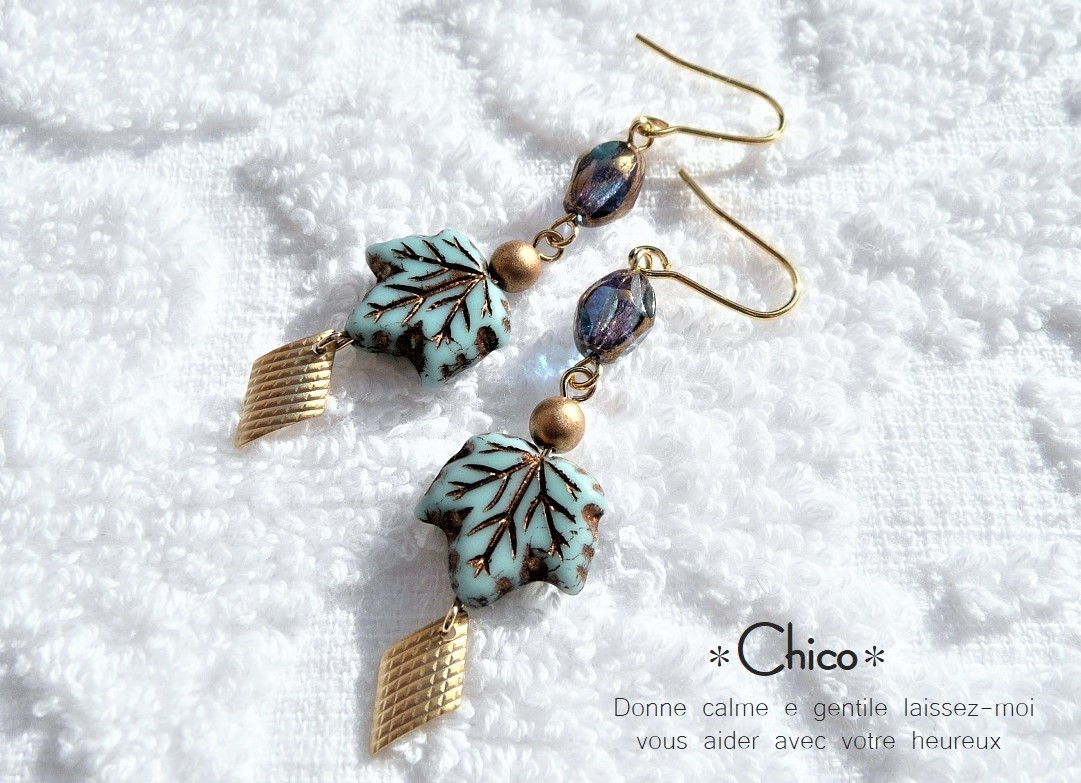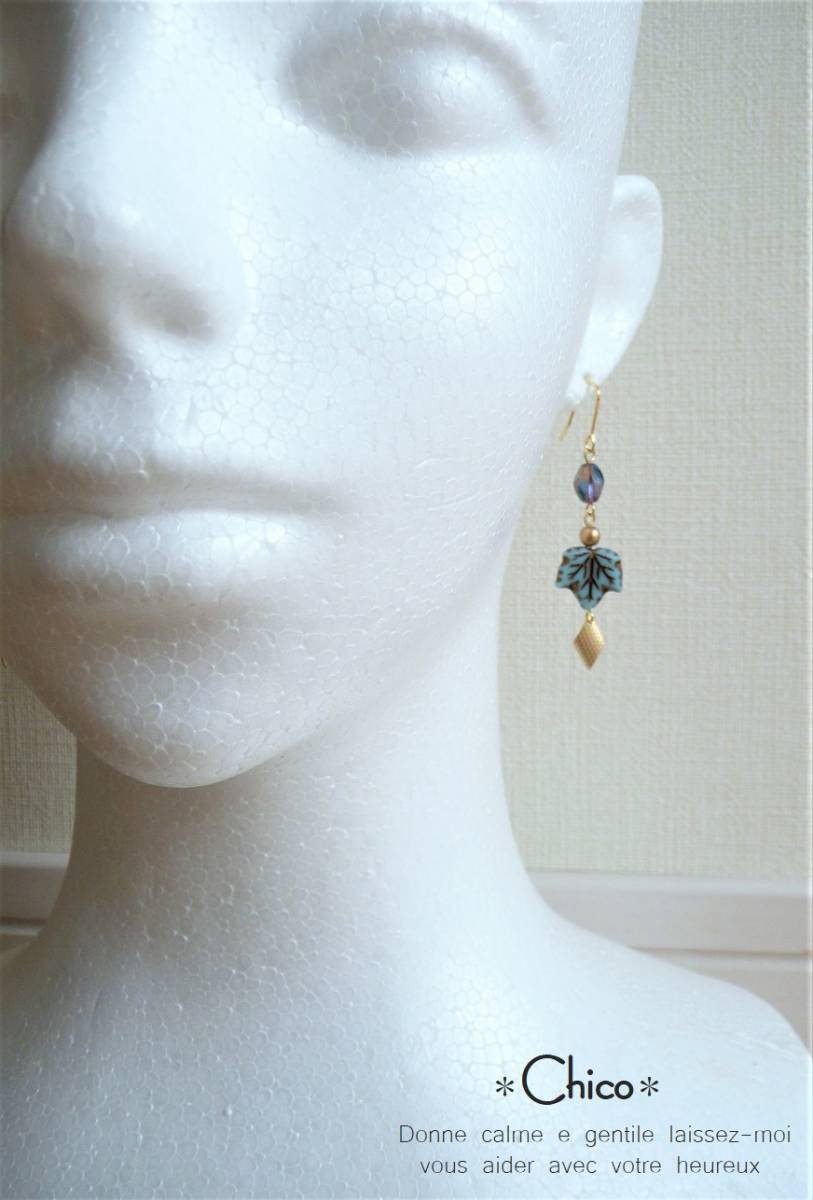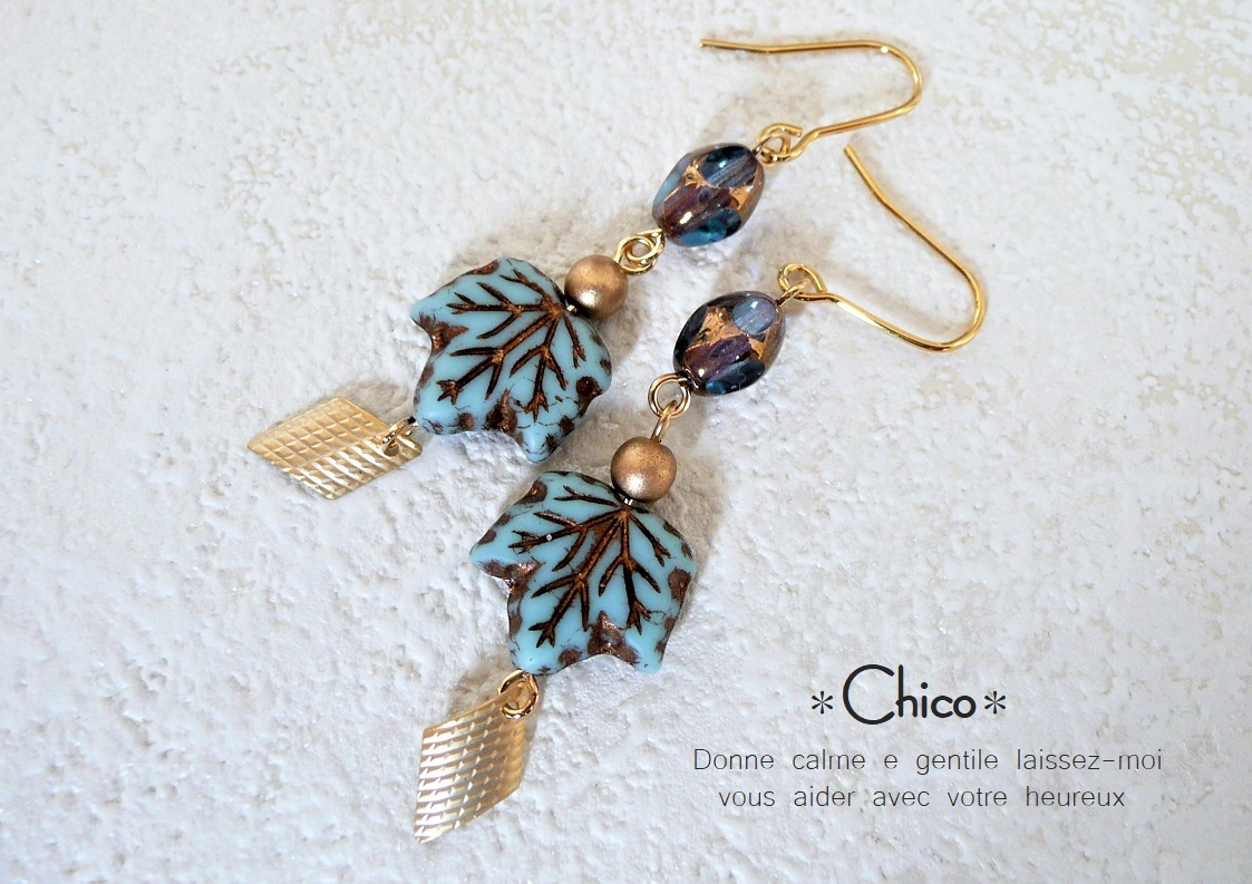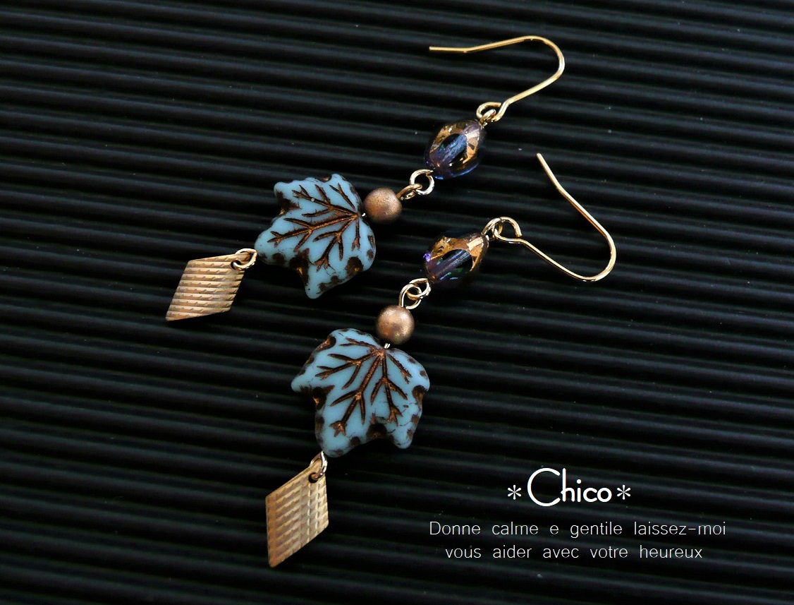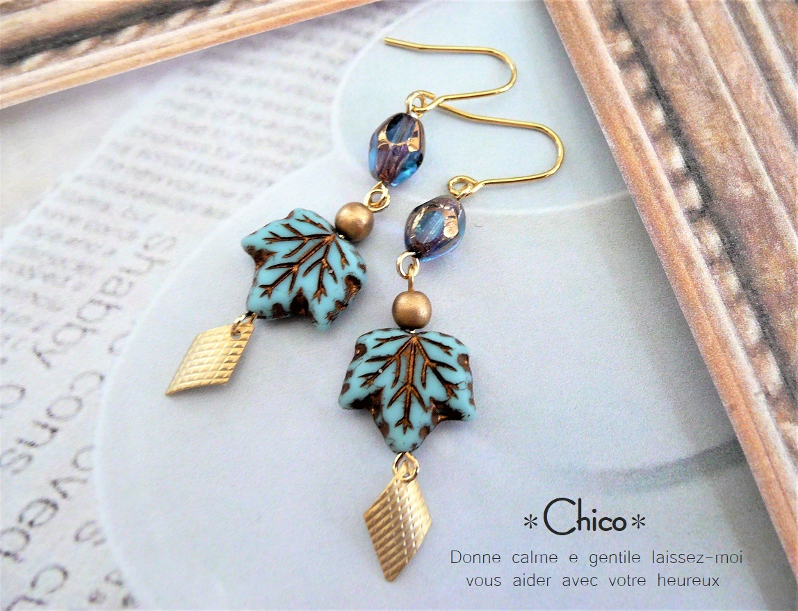 ◆チェコ メイプル ライトブルー コッパー&ひし形マットゴールドetc ハンドメイドピアス ♪ ★2点以上送料無料!★