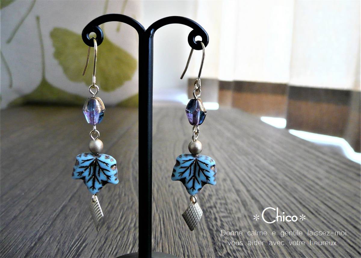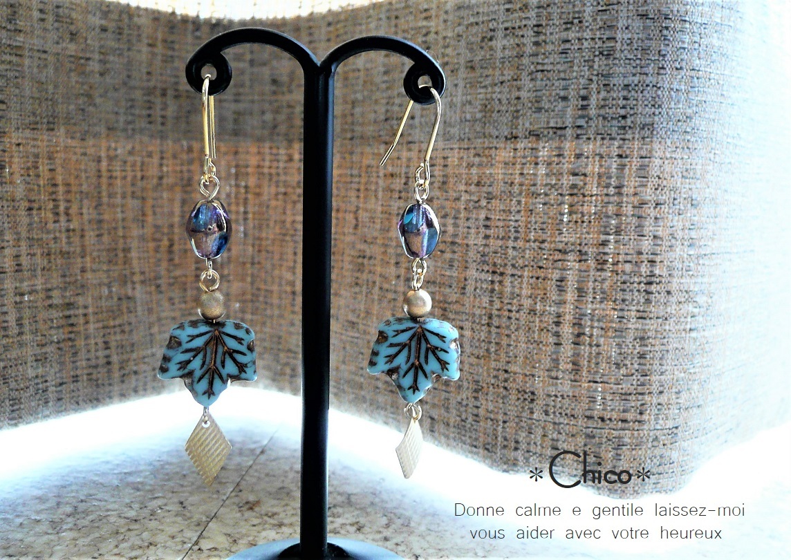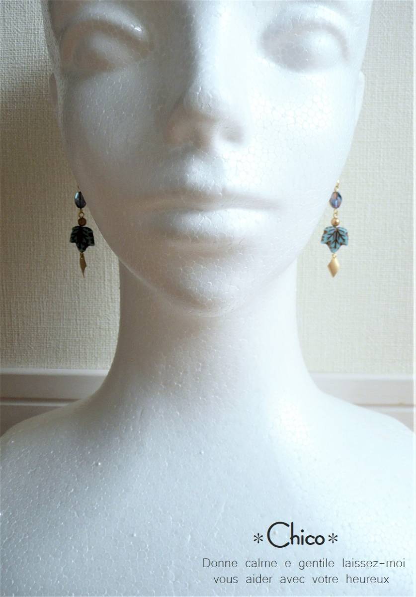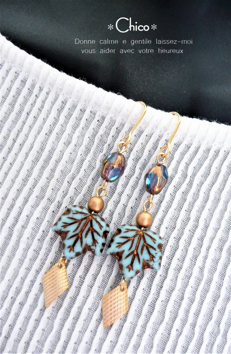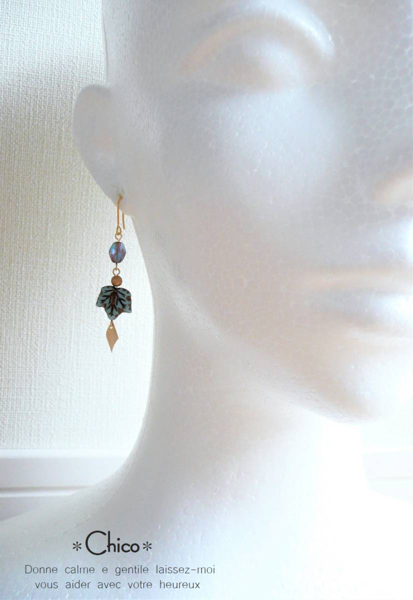 ◆チェコ メイプル ライトブルー コッパー&ひし形マットゴールドetc ハンドメイドピアス ♪ ★2点以上送料無料!★