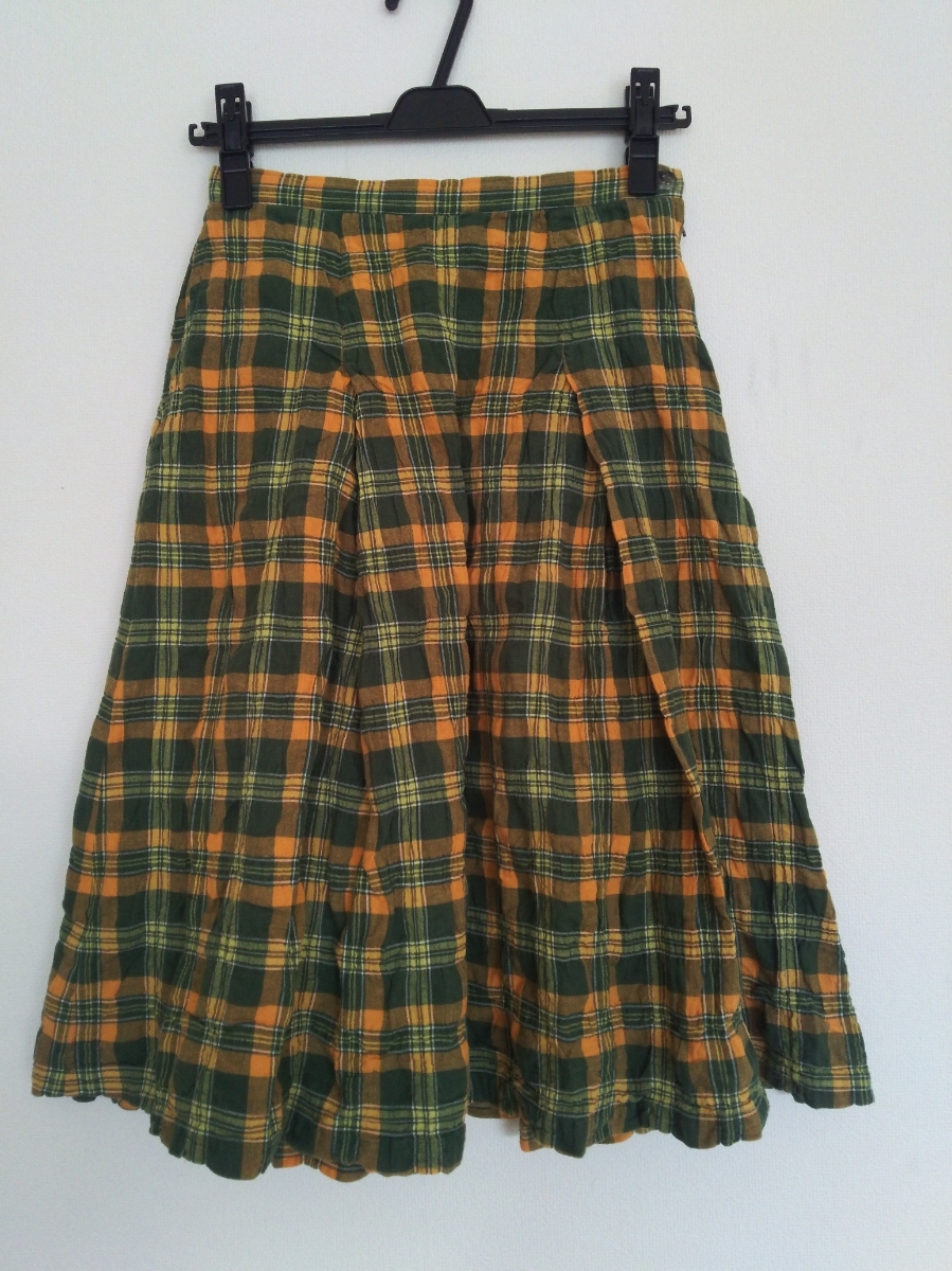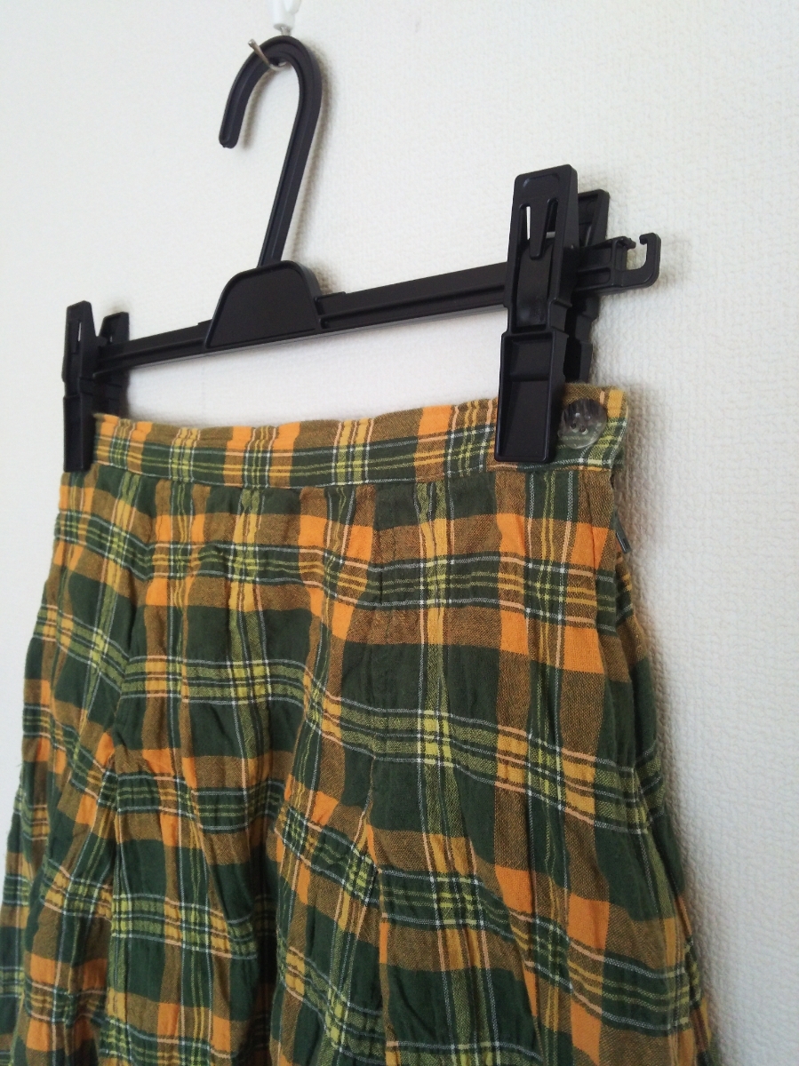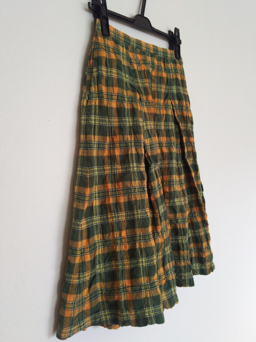 s678 ナチュラル美人 春支度 ■PAR ICI■ パーリッシィ 日本製 シワ加工 綿スカート ひざ下丈 チェック柄 オレンジ×緑系 サイズXS~S