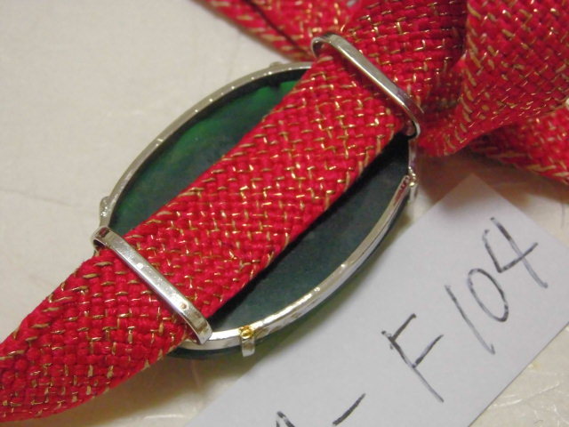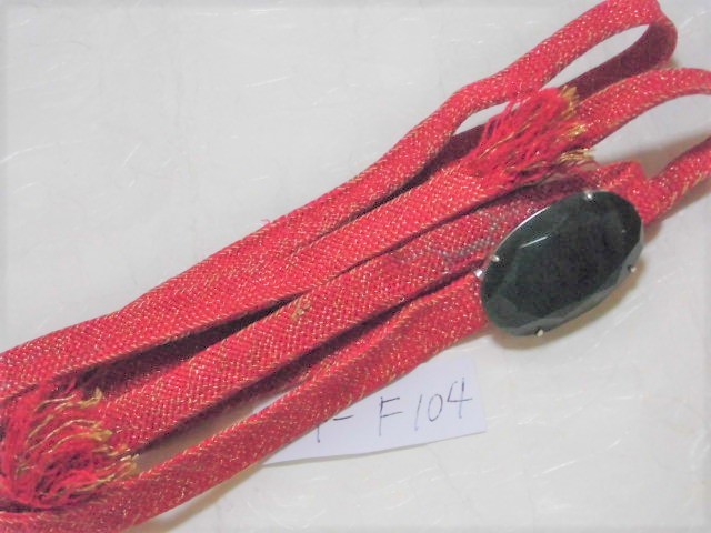 レトロ きれいにカットされた大きな緑色の縞瑪瑙の帯留め/帯締め付き/H4-F104