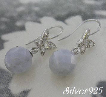 ★在庫処分★シルバー925ピアス2個セット 天然石ブルーレースメノウ&ジルコニア付/店舗閉店のため銀アクセALL50%OFF
