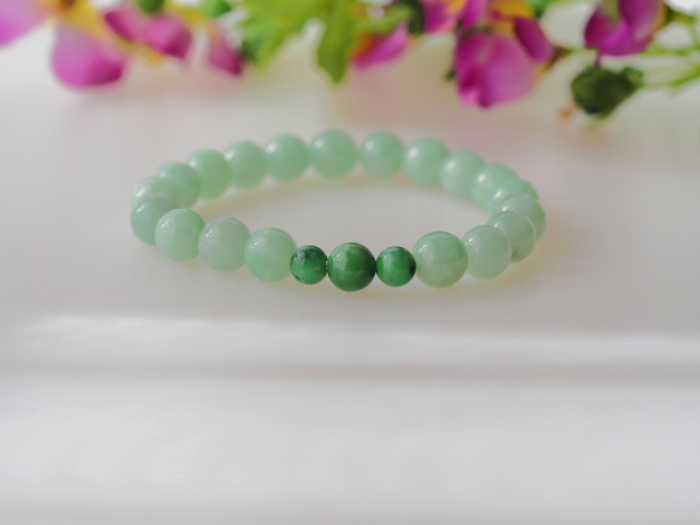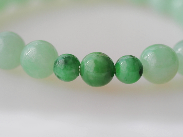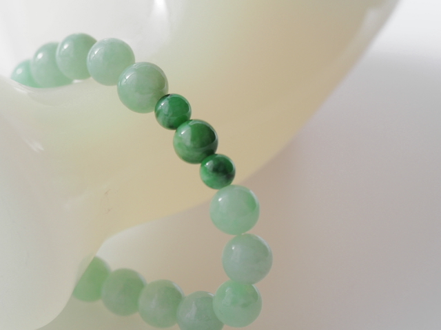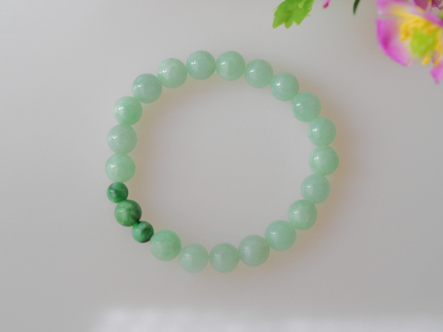 こちらは、穏やかで優しい色合いで、肌馴染みも良い色を天然無処理翡翠のブレスレット。