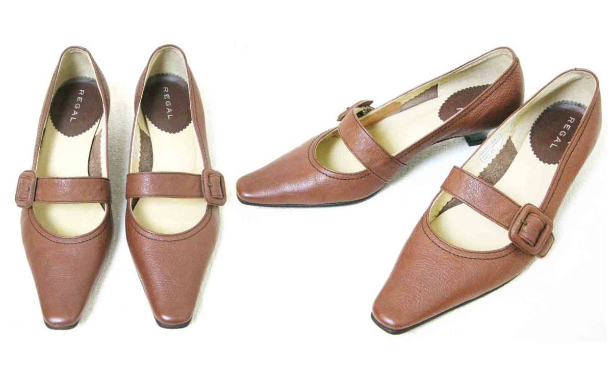 ■REGAL【リーガル】茶 レザー パンプス 22.5㎝■ローヒール フラットシューズ