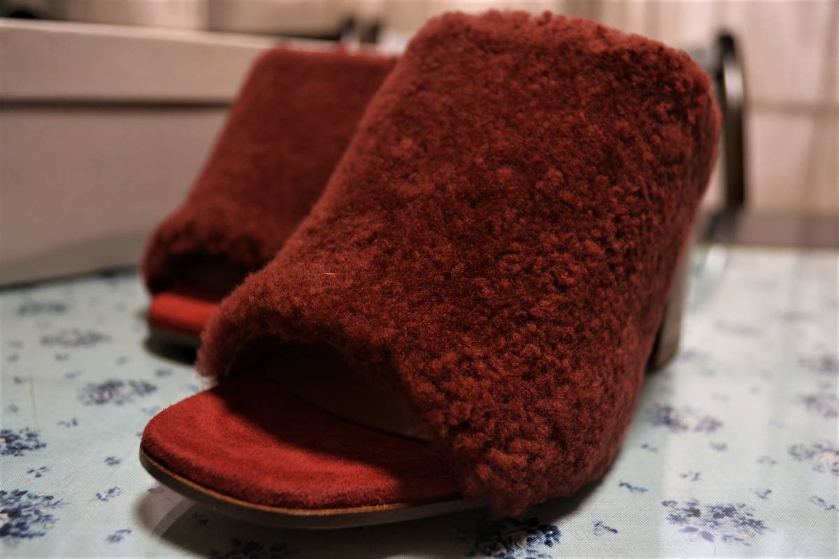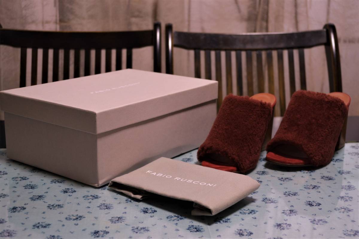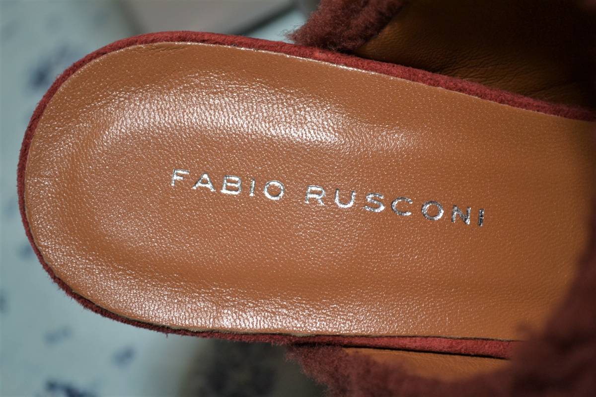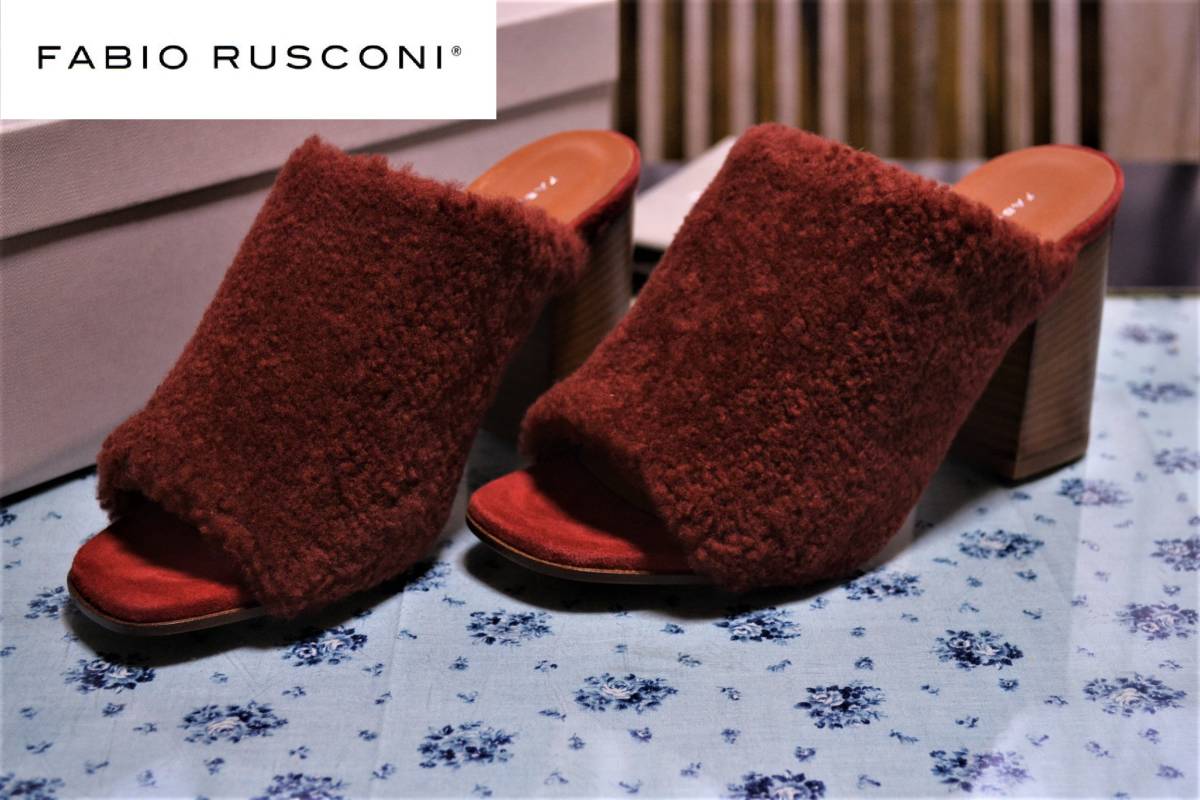 FABIO RUSCONI ファビオルスコーニ PISA チャンキー×スタックドヒール ボアミュール【ワインブラウン系(BRUCIATO)/イタリア36(日本サイズ23.0相当)】です。
