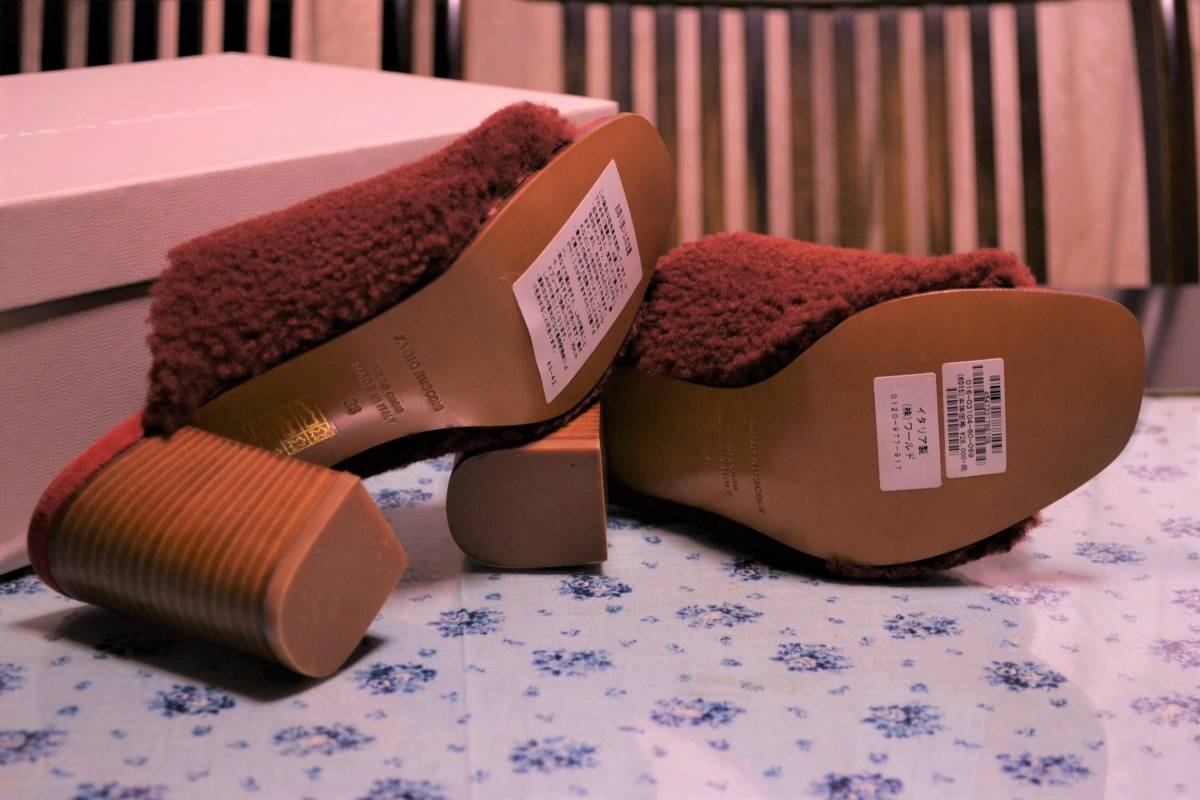 メイド・イン・イタリー(表示あり)、アッパー素材はボア×レザーなど、ソール素材はレザーなど、表記サイズは36(日本サイ23.0cm相当)、素人採寸ですがソール長約24cm、ソール幅約8cm(最長部計測)、ヒール高約8.5cm、筒高約1cm、専用箱付未使用、購入時の定価3万240円(表示あり)、型崩れを防ぎながら冷暗所にて大切に保管しています。