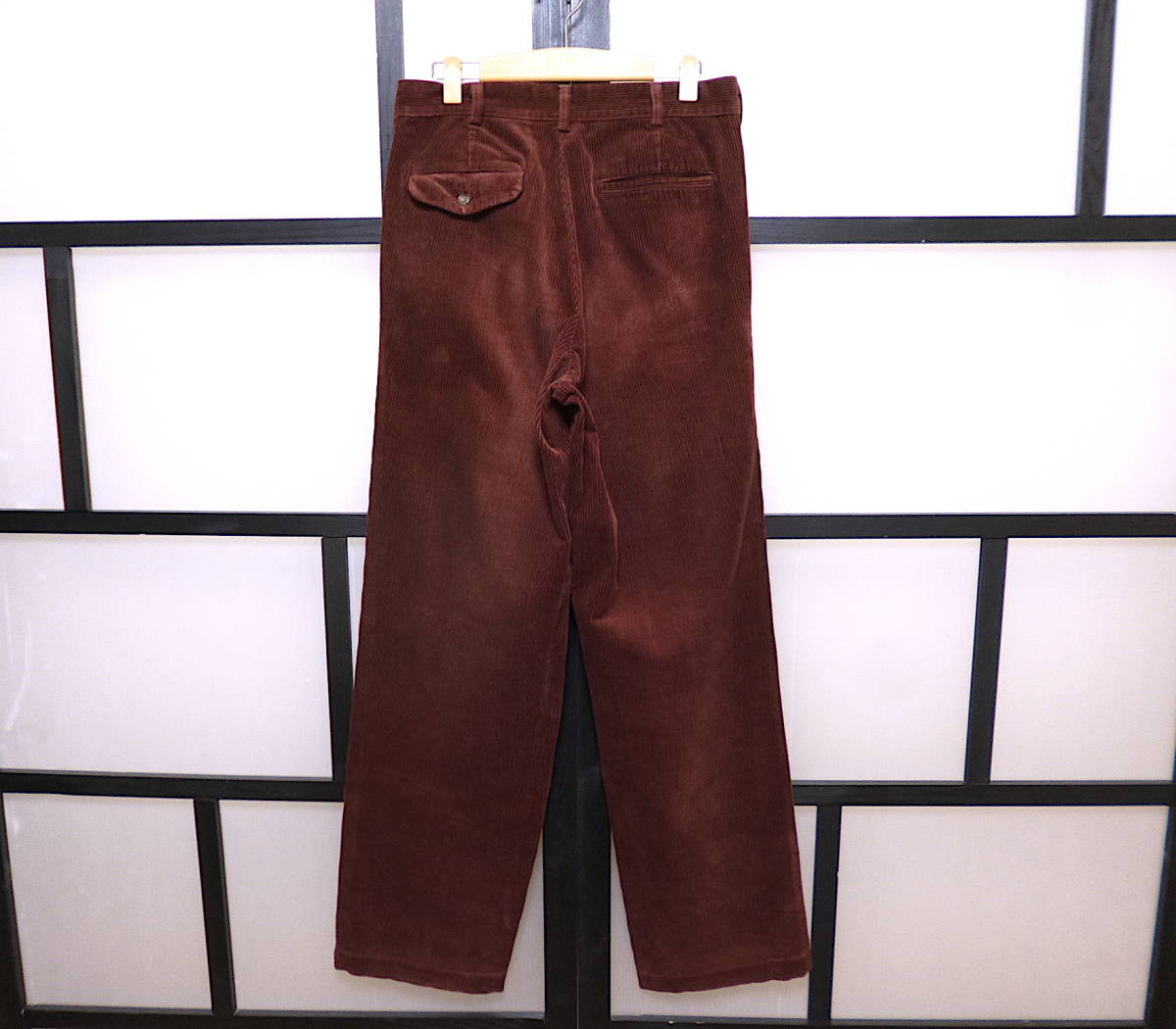 コメント | 全体的なデザインはベーシックなトラウザースタイプで、フロントはジッパーフライ、ツータック、シルエットはストレートになります。他にも色々なブランドのコーデュロイパンツや、その他いろいろなアイテムを出品しています。よろしければご覧ください。 |