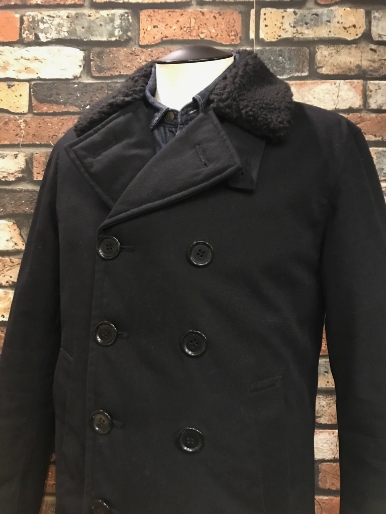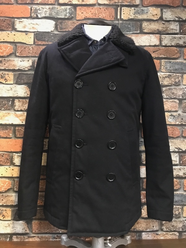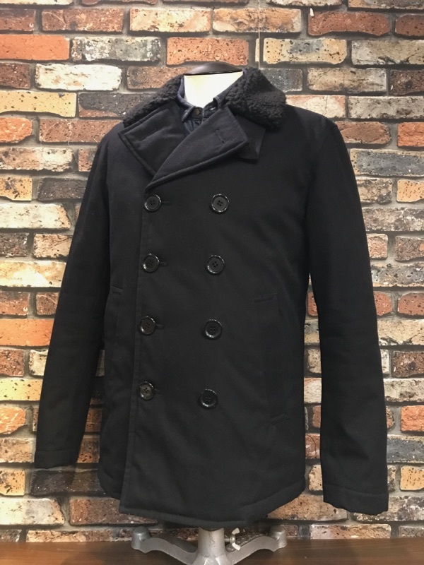 G656 メンズコート BEAMS ビームス Pコート おしゃれ 無地 ブラック ダブル コットン ボア 中綿 定番 人気 (100)/ M