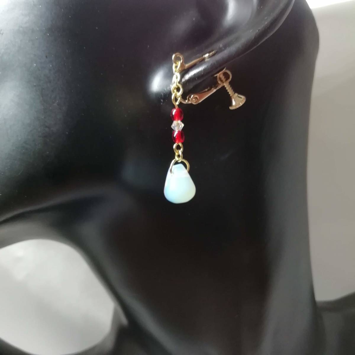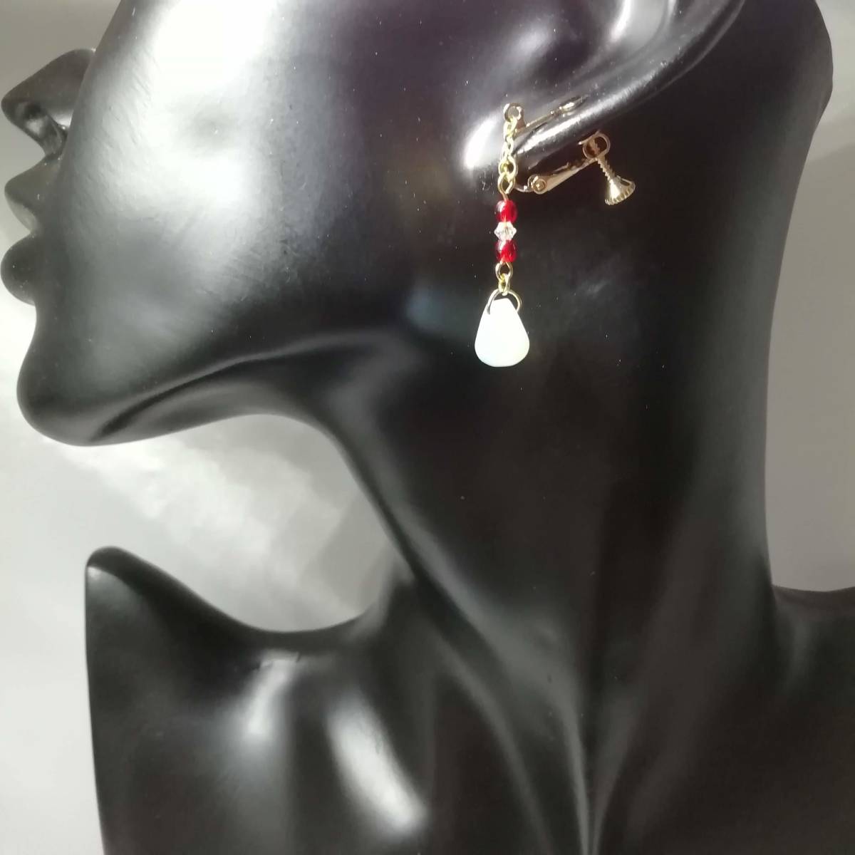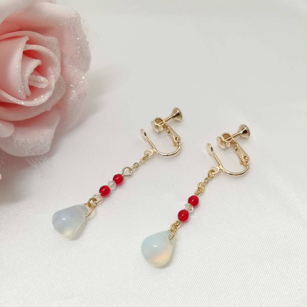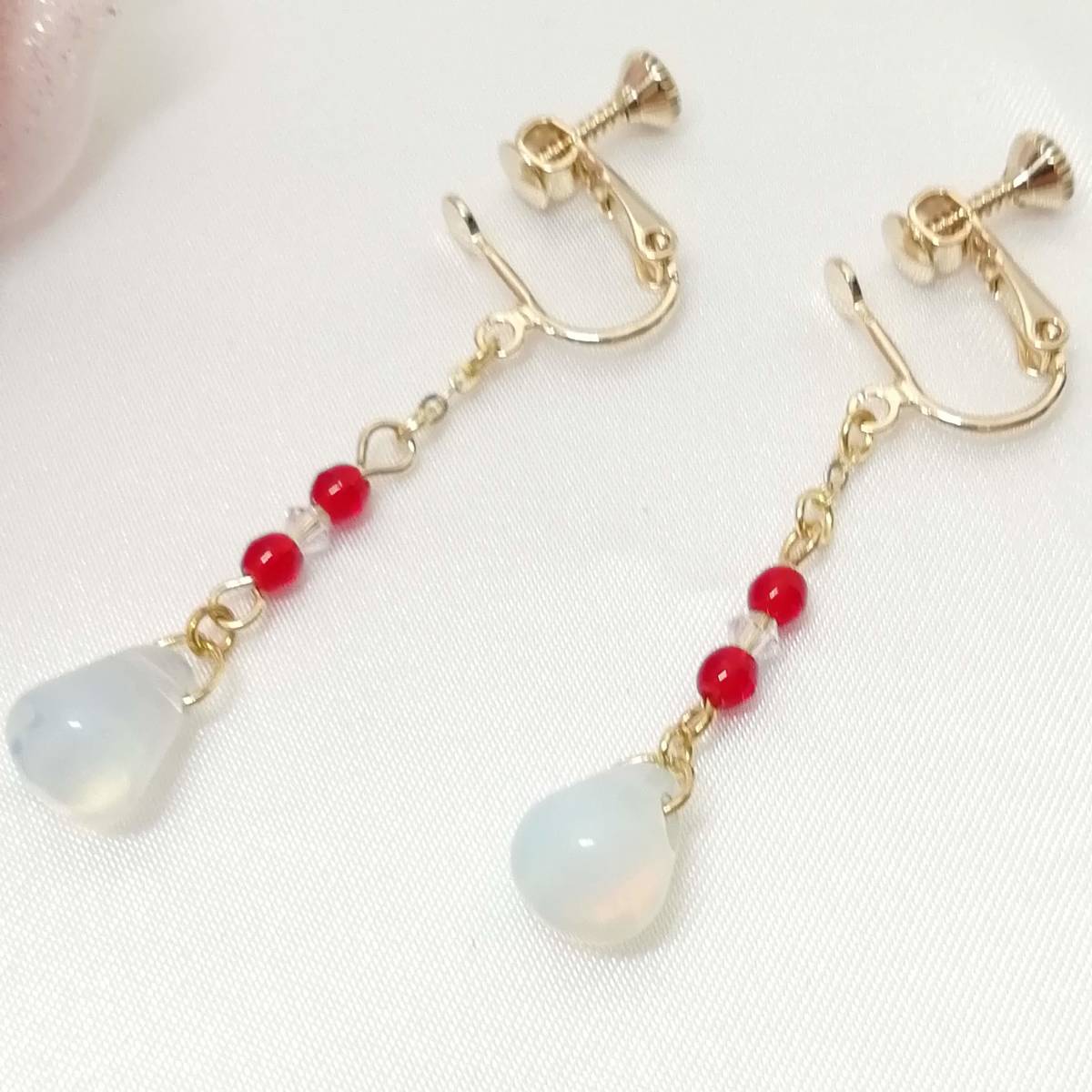 ★商品内容★ ★だるま形ビーズとシャムルビーのハンドメイドイヤリング★だるま形/雫/ゴールド/チェコビーズ/シャムルビー/上品/ホワイトオパール/短め ホワイトオパールのだるま形雫が可愛らしいイヤリングです.・*.・**。・.*・**。・. 小粒のシャムルビーとゴールドの組み合わせが 上品な女性らしさを印象付けます.・*.・**。・.*・**。・. 普段使いはもちろん、オフィスにも お出掛けやお洒落のワンポイントにも最適です.・*.・**。・ 【素材】 ガラスビーズ雫(だるま形)ホワイトオパール8mmx10mm チェコビーズライトシャムルビー(チェコ産)3mm スワロフスキー5328クリスタルAB(オーストリア製)3mm カンより垂れ下がる長さは、約3.6㎝です。 Eー472 ★商品状態★ ・画像と実物の色味が多少異なる場合があります。 ・緩衝材(プチプチ等)を使用し、防水梱包でお届け致します。 ★注意事項★ ***~ご購入前に必ずお読み下さい~*** ***商品について*** *一点一点心を込めて作っておりますが、手作りなため多少の歪み等あるかもしれません。 手作りの味わいと、世界で一つだけの作品とお考えいただければ幸いです。 *デリケートな商品ですので、強く引っ張ったりすると破損する事もあります。 お取り扱いにはご注意ください。 *写真も完璧な色合いの表現にはなっていない場合もあります。 *基本イヤリング金具は跳ね上げ式ネジ付きを使って作成しています。 ご希望によりピアスへの変更も承っております 【フックピアスへの変更(無料)/キャッチピアスへの変更(別途追加料金120円)】 ~ご注文の際にメッセージ欄よりお申し付けください~ 尚、金具変更のご希望が無い場合は、掲載された写真の金具にてお送り致します。 *金属アレルギーへの対応はしておりませんので、ご心配な方はご遠慮下さいますようお願い致します。 *永くご愛用頂くために、ご使用後は柔らかい布等で軽く拭いてください。 ***ご質問について*** *ご購入前にお願い致します。 日中は仕事をしておりますので、ご返事が直ぐに出来ない場合がございます。 出来る限り早い対応を心がけますが、ご了承ください。 また、発送までには、お振込み確認後、翌日の発送を心がけておりますが、仕事の都合により2~3日程かかる場合がございます。(その際にはナビにてご連絡いたします) お急ぎの場合は、極力対応いたしますが、場合によっては対応致しかねる事もあります。ご了承下さいませ。 落札後4日以内にお手続き、ご連絡が無い場合は落札者都合で削除致します。 発送日指定・ご入金の予定が1週間以上先をお考えの方は、入札の前に質問よりご連絡くださいませ。 予めご了承の上、ノークレーム・ノーリターンでお願い致します。 | |||