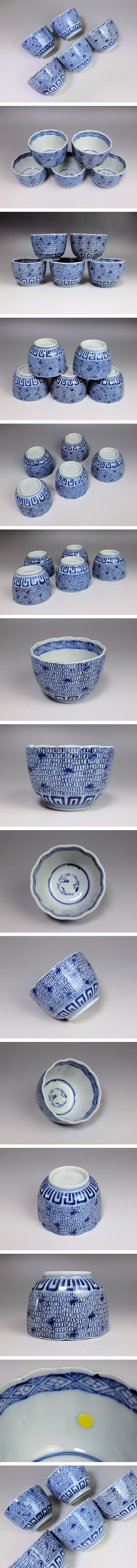 ★華心★ ACs-A275 古伊万里 染付 微塵唐草紋 猪口 向付 5客