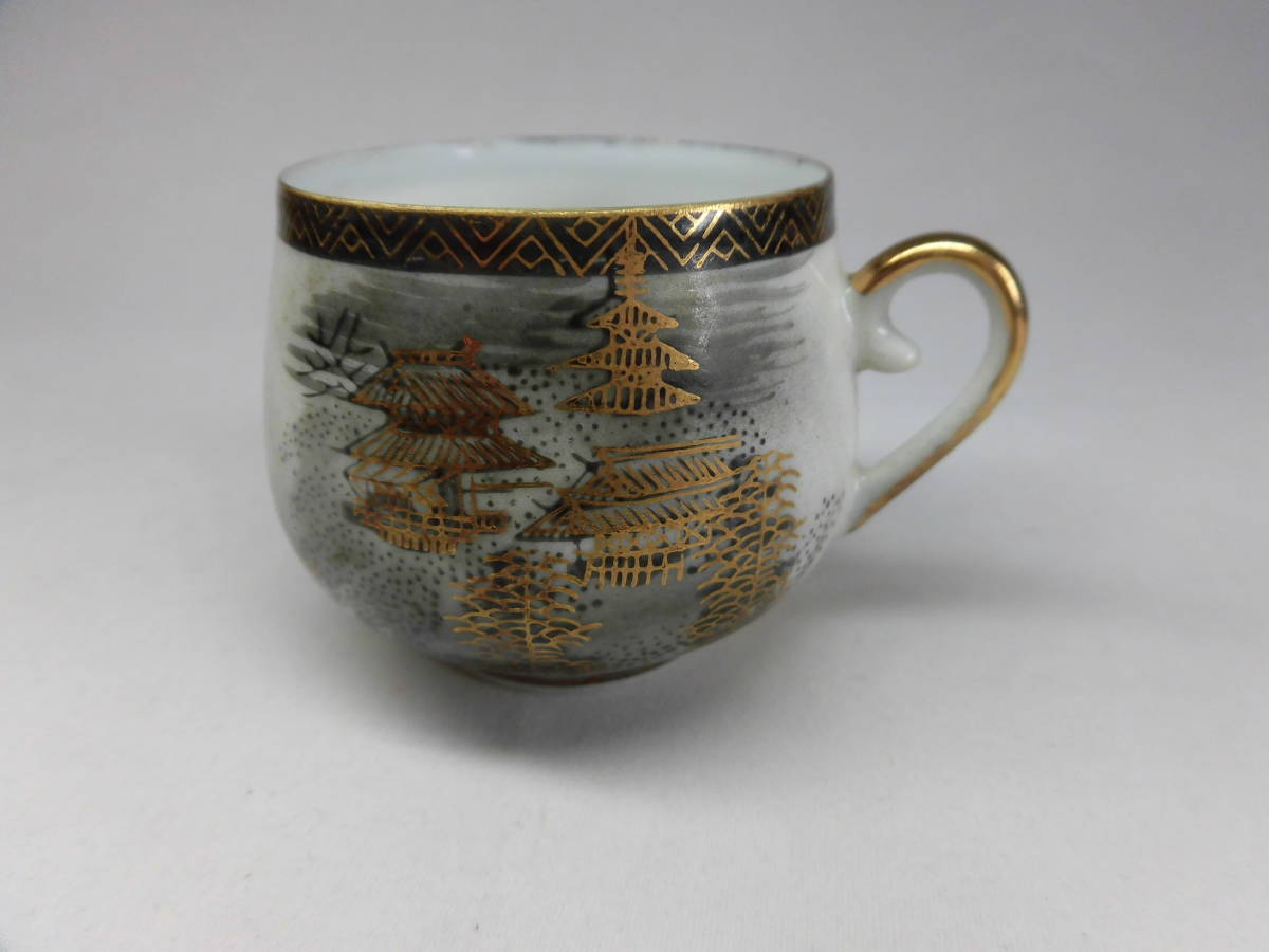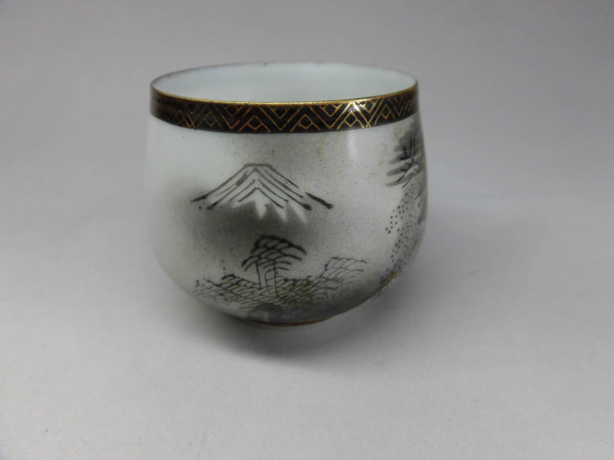 明治期頃の上手の富士に五重の塔・手付きぐい飲みです。
