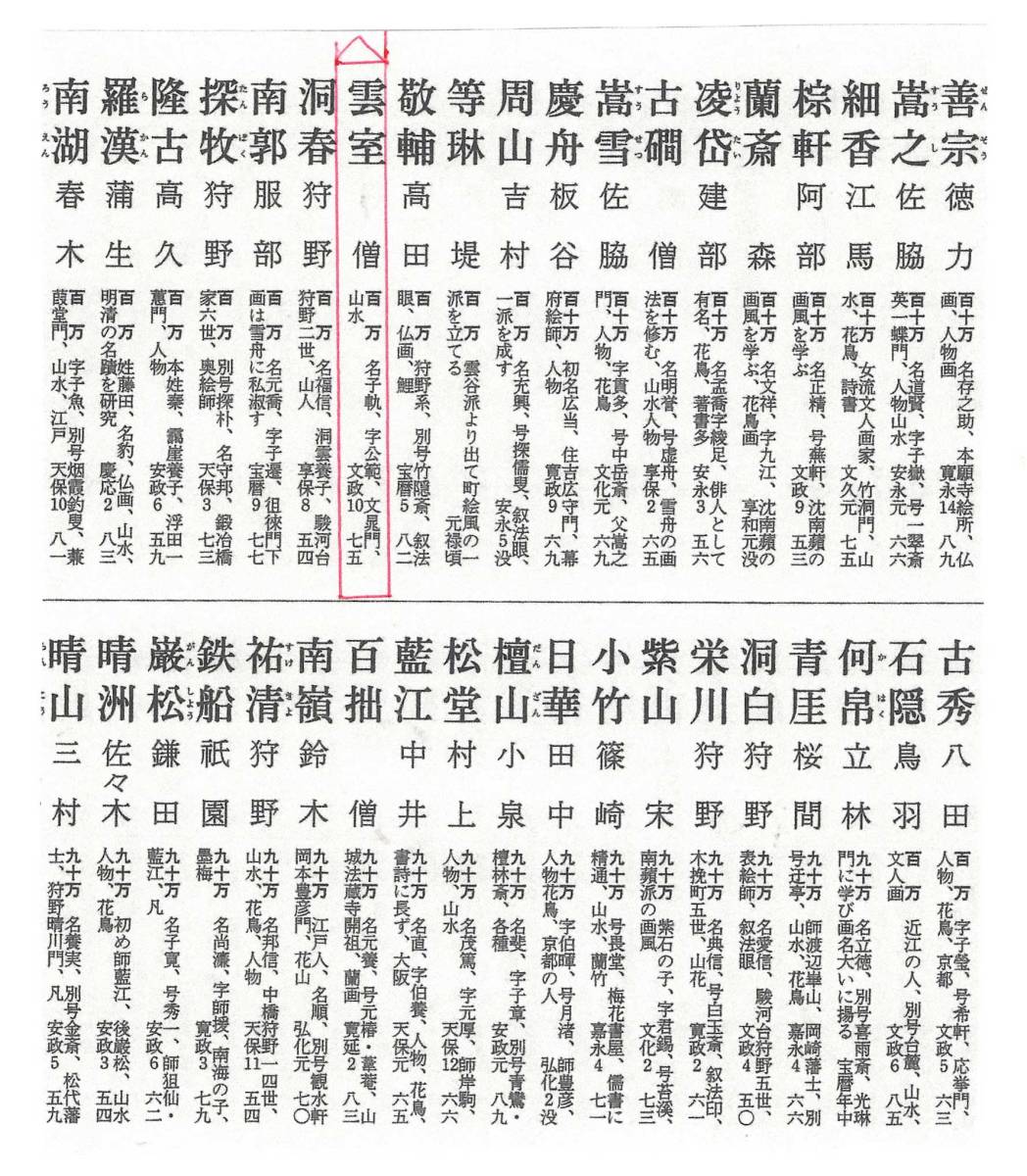 | 雲室は江戸中期の画僧。昌平黌で教鞭を執った学者であり、如亭・鵬斎などの文人との交友もあった |