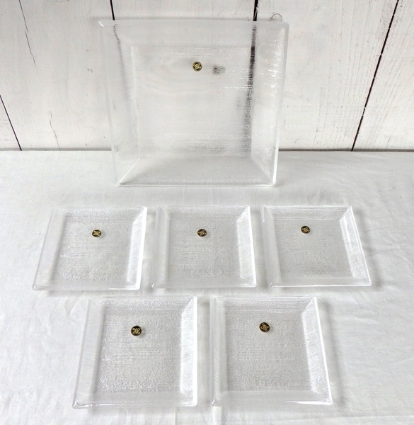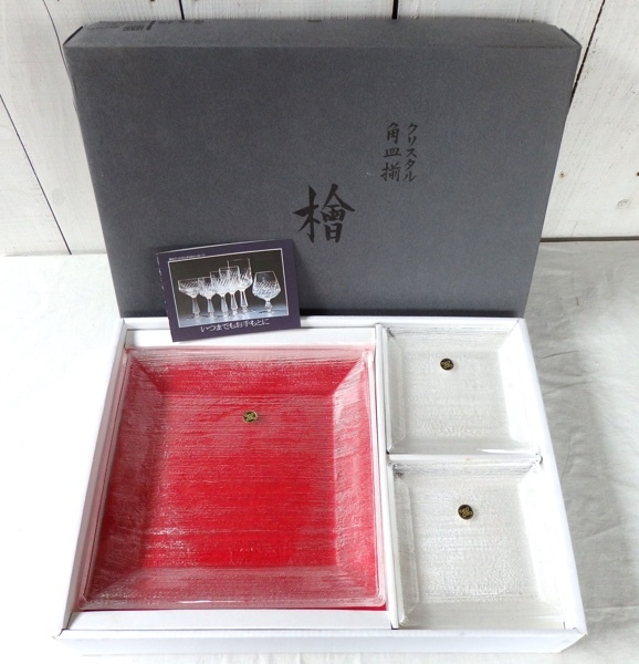 保谷クリスタル クリスタル 角皿 檜 大皿 1枚 小皿 5枚 セット 共箱付です。