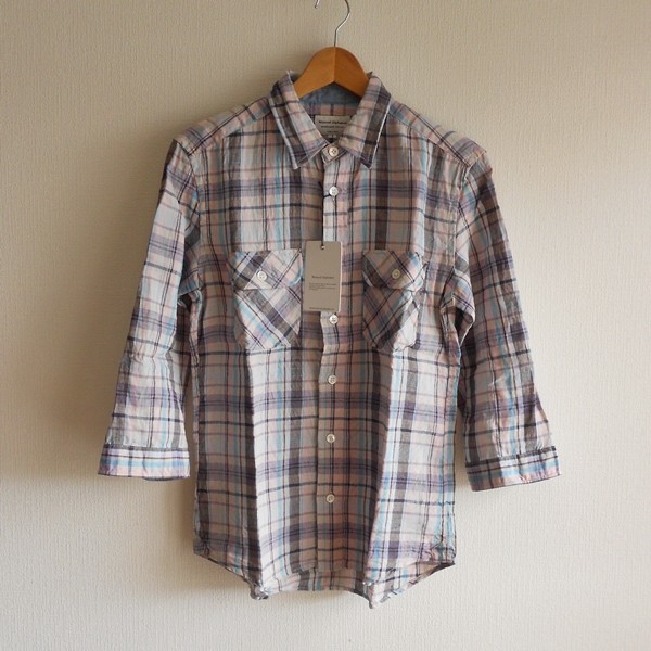 新品未使用・Manual Alphabet・7分袖チェックシャツ・Sサイズ ☆日本製・マニュアルアルファベット