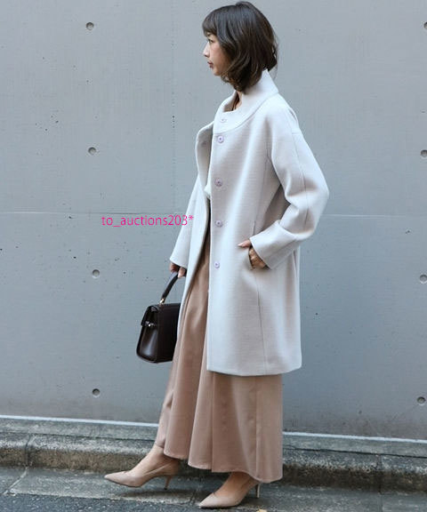 定番のボトルネックコートも柔らかなニュアンスカラーを選ぶだけで新鮮なイメージに◎