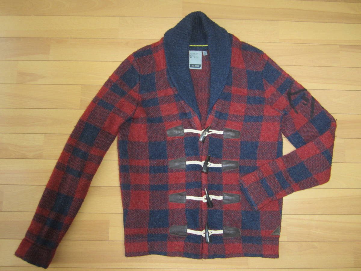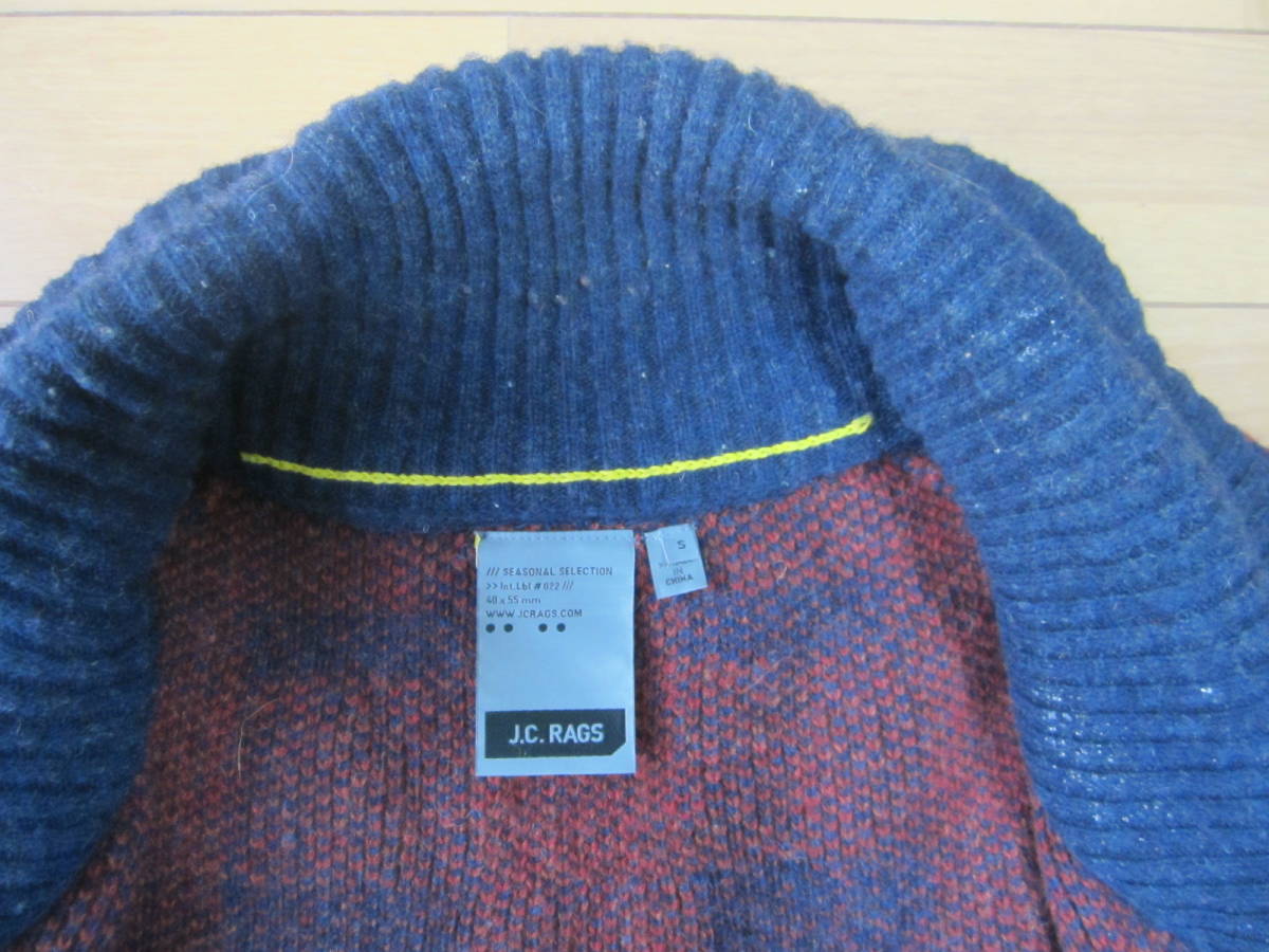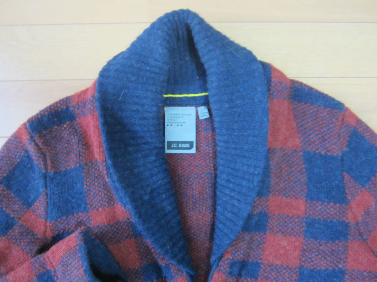★J.C.RAGS RN128608 ショールカラーチェック ニットジャケット★紺赤sizeS★