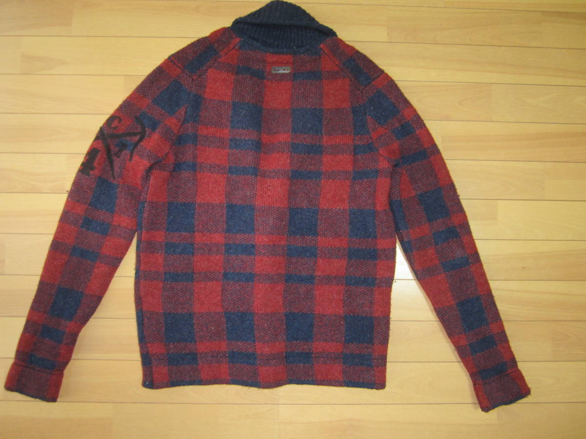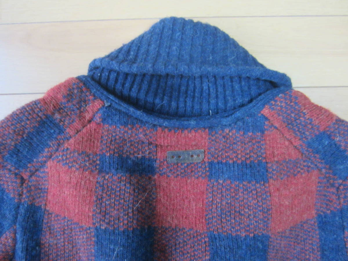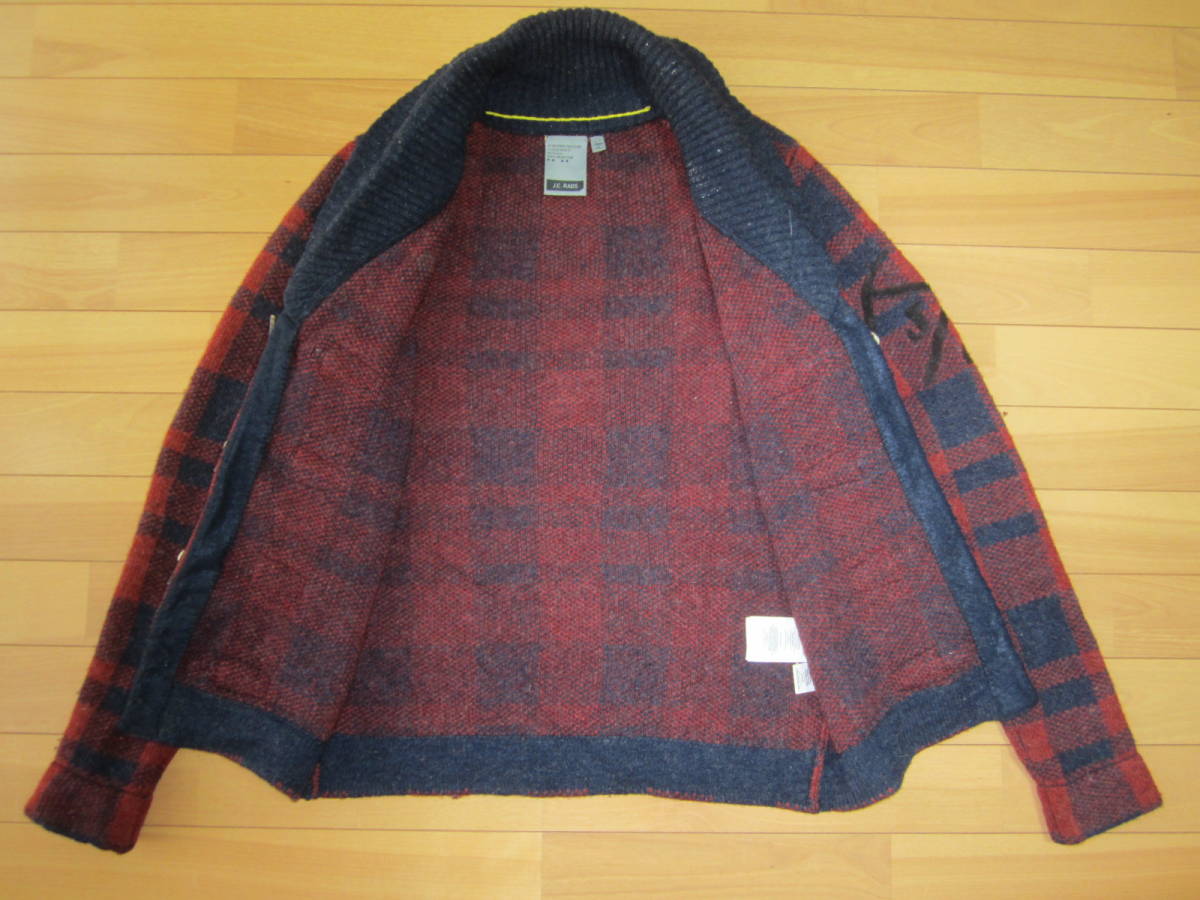 ★J.C.RAGS RN128608 ショールカラーチェック ニットジャケット★紺赤sizeS★