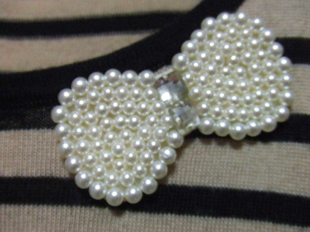 ★Couture brooch★クチュールブローチ ボーダートップス ベージュ×黒 パールリボン
