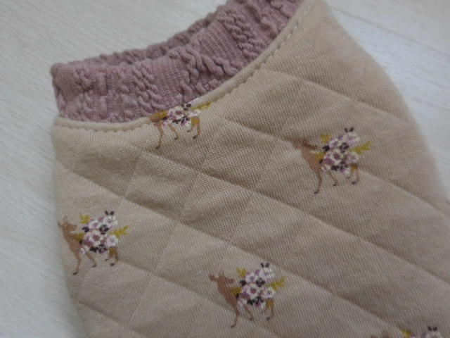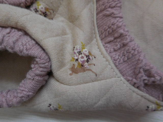 家庭用ミシンで作っているため、ニットの毛羽立ちがあります。