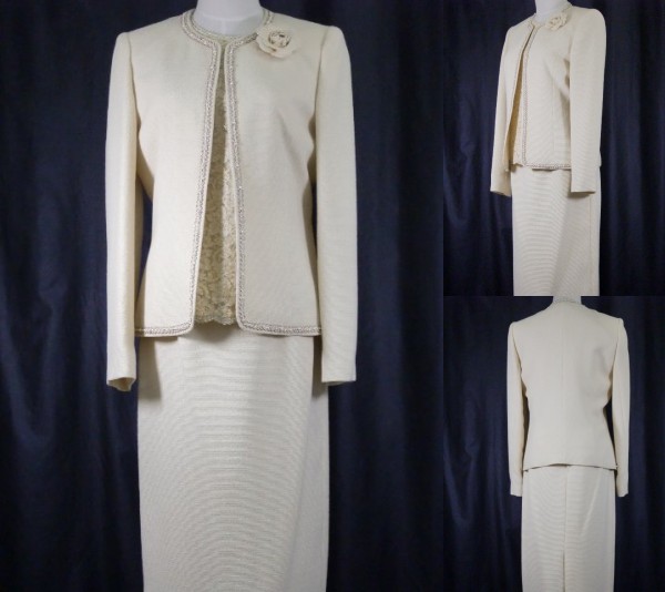 | ●商品説明● | ◆製品番号 AF-711 ◆サイズ 9 実寸 上着 : 肩幅 40 着丈 57 袖丈 60.5 胸囲 46×2 実寸 スカート : ウエスト 64 ヒップ 92 丈 71.5 実寸 ブラウス : 肩幅 38 着丈 51 袖丈 48 胸囲 44×2 ( )は表示サイズ 単位:cm (多少の誤差は、ご了承ください。) ◆色・柄 クリーム系 ◆品質 不明 ◆仕様 上着 : 肩パット スカート : 脇ゴム 後ろファスナー スリット ブラウス : 肩パット 背ファスナー ◆生産国 中国製 ◆シーズン 秋冬 ◆参考価格 ★アウトレット品の為、特価にて大放出!!! | |