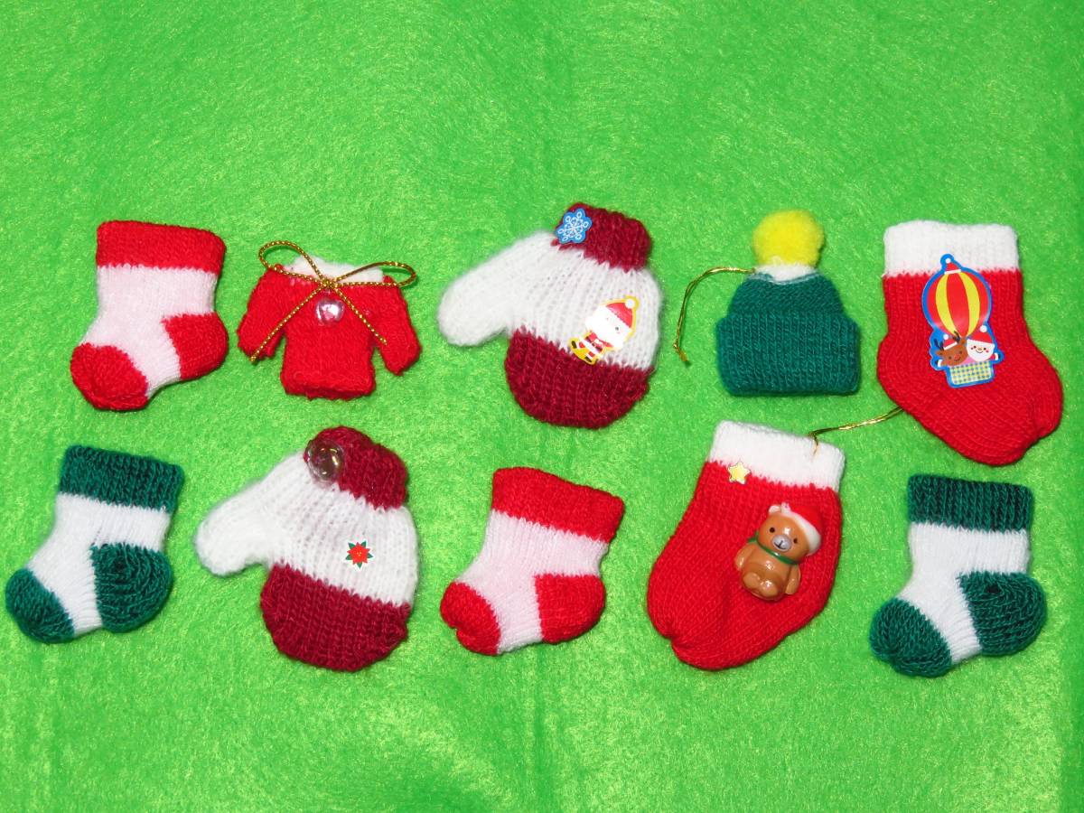 【☆クリスマス ニットチャーム 10個☆】B2*訳あり*ボウシ ソックス 手袋 セーター ヘアアクセサリー製作 ツリー飾り ハンドメイド