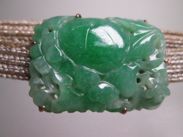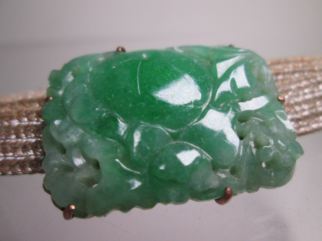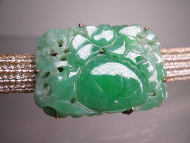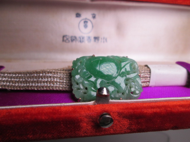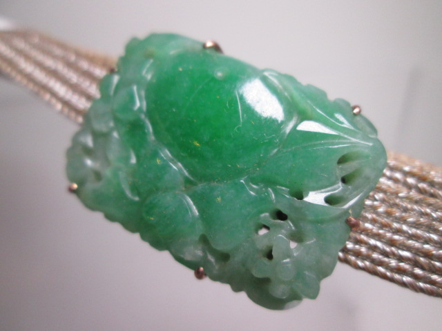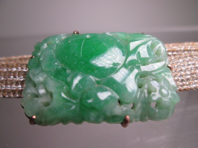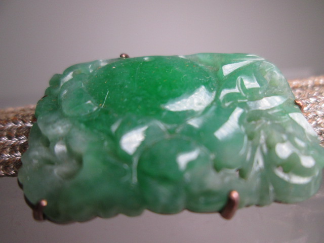 【江月】アンティーク・小野春 本翡翠 花と実透かし彫刻の帯留め 共ケース付