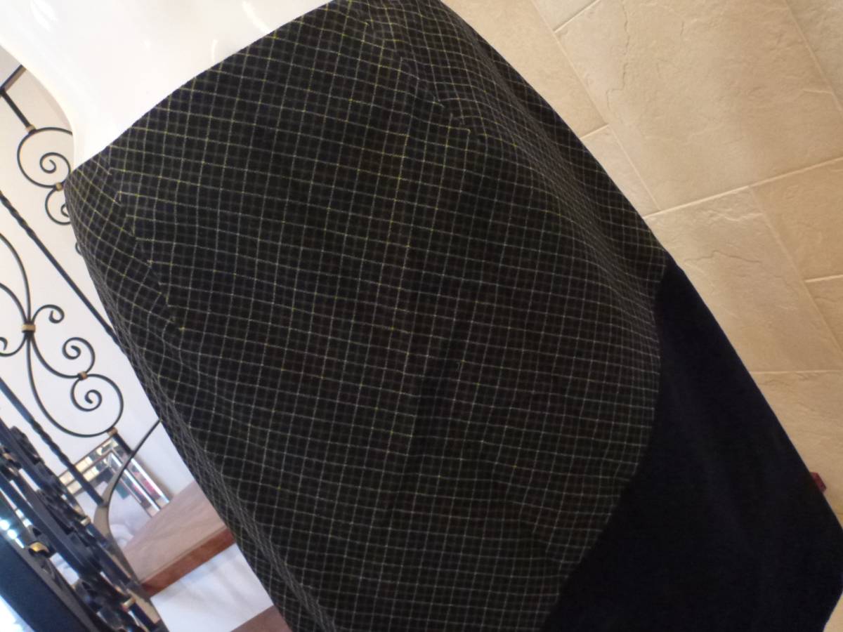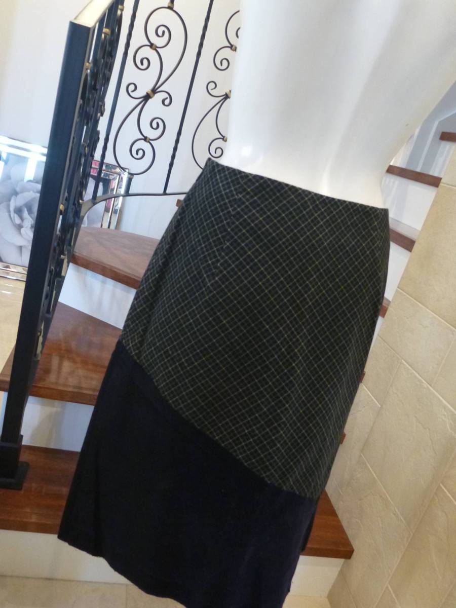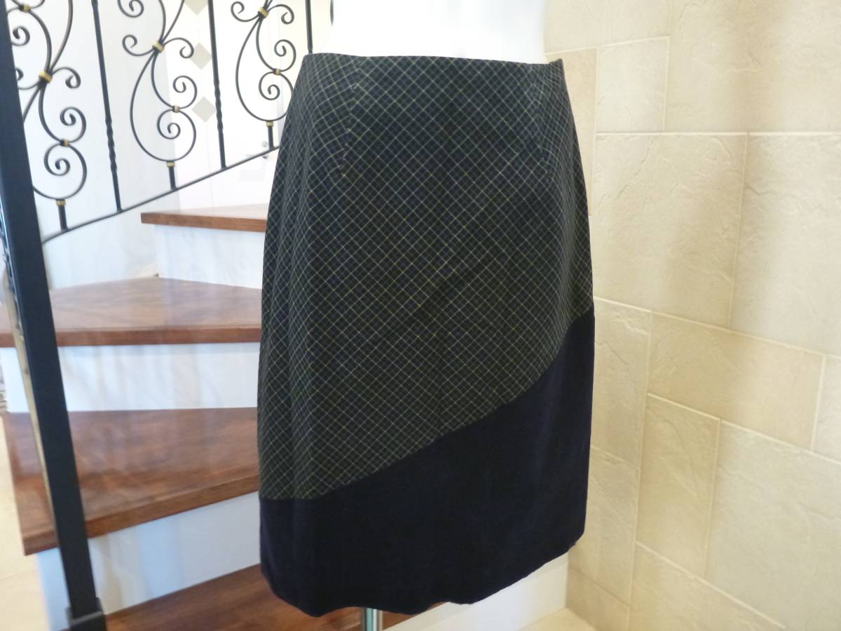 Jocomomola(ホコモモラ) 緑チェック×紺ネイビー ベロア スカート 40   M相当9号
