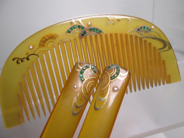 サイズ 櫛 9,3cmx4,3cm 笄 17,4cm