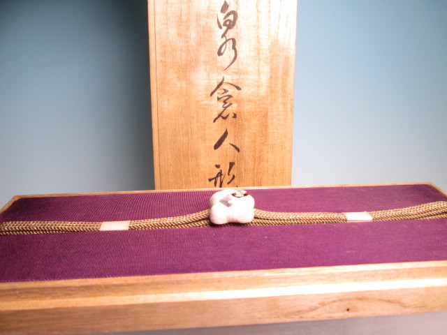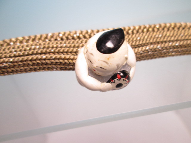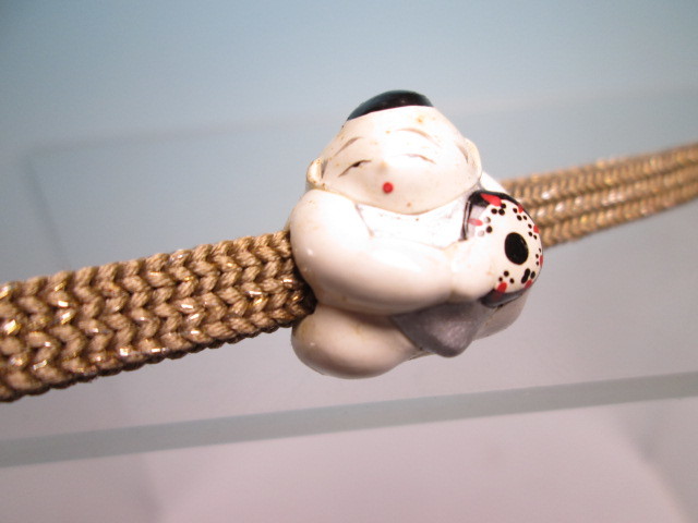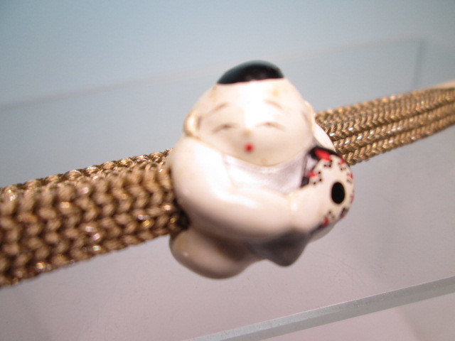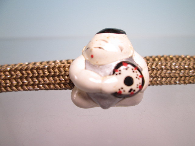 【江月】 アンティーク・長保作 {泉倉人形}御所人形鼓を打つ唐子の帯留め 木箱付 A