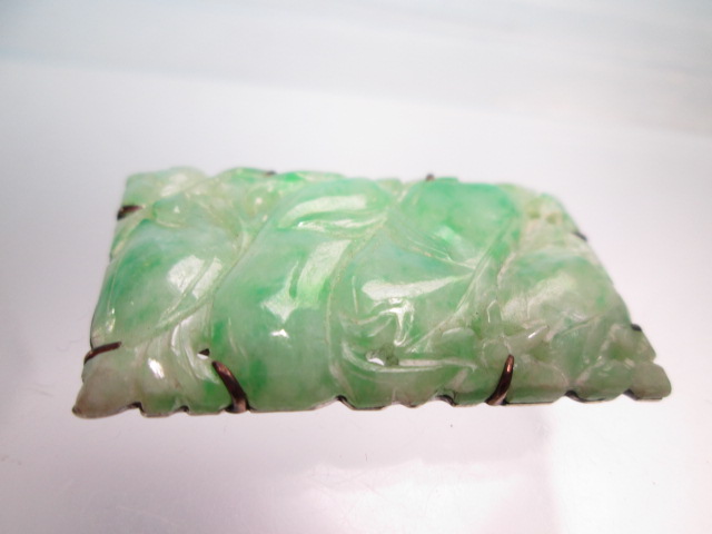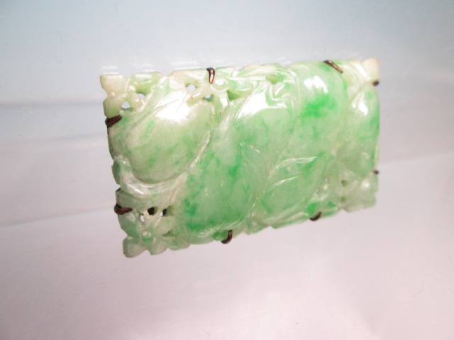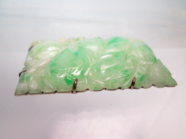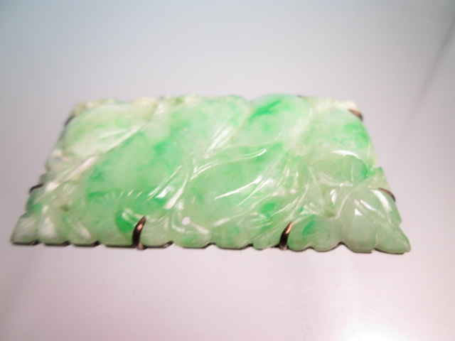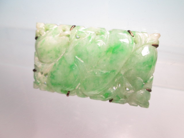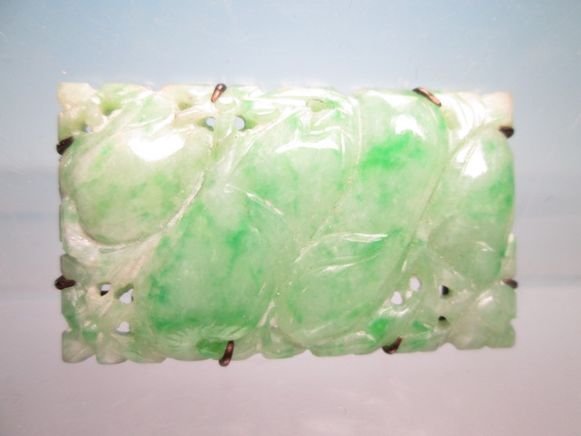 ☆アンティーク・本翡翠 葉と実彫刻の帯留め 12,61g