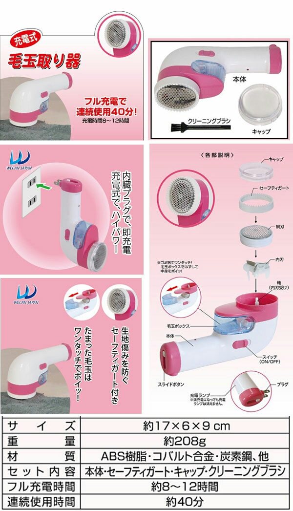 ●充電式なので、電池式よりパワーが圧倒的に強力で、効率よく毛玉をとることができます。