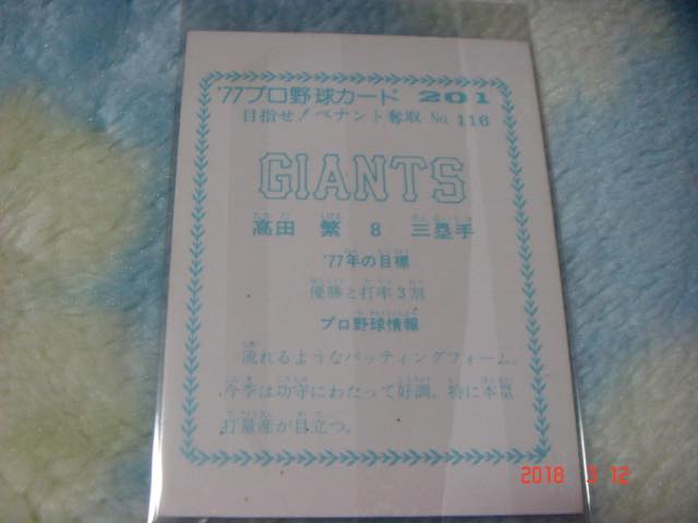 カルビー '77年 プロ野球カード 『目指せ!ペナント奪取』ハイナンバーカード NO.201 (高田/巨人) 青版 美品